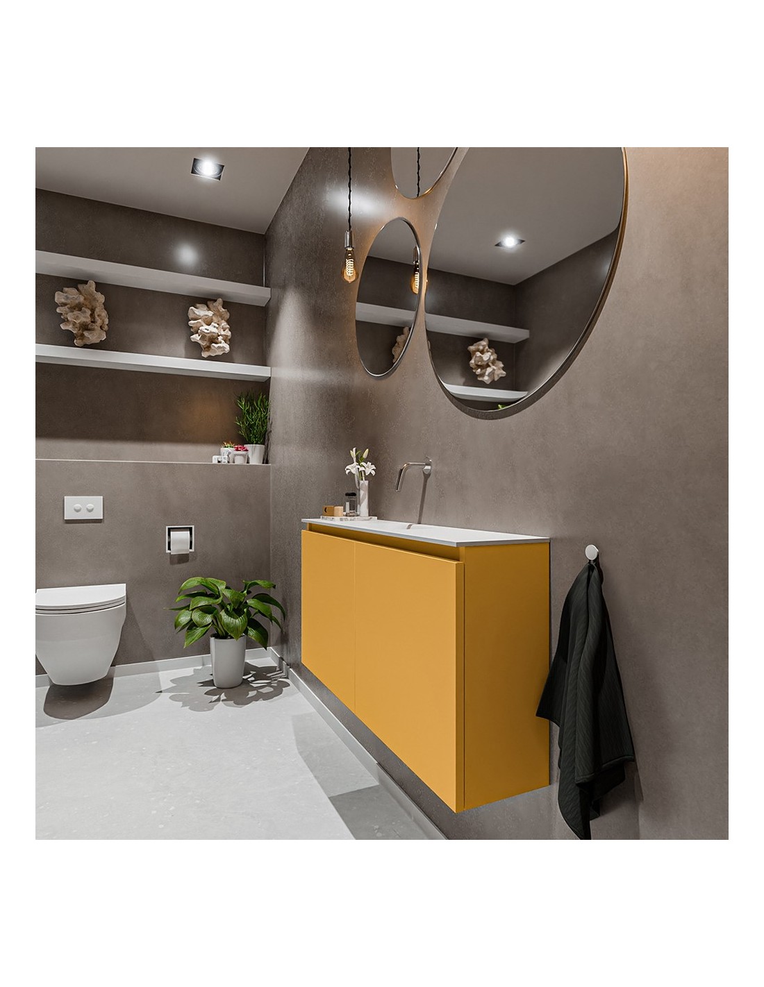TURE Komplet badmiljø centreret håndvask B100 cm MDF - Okker/Talkum