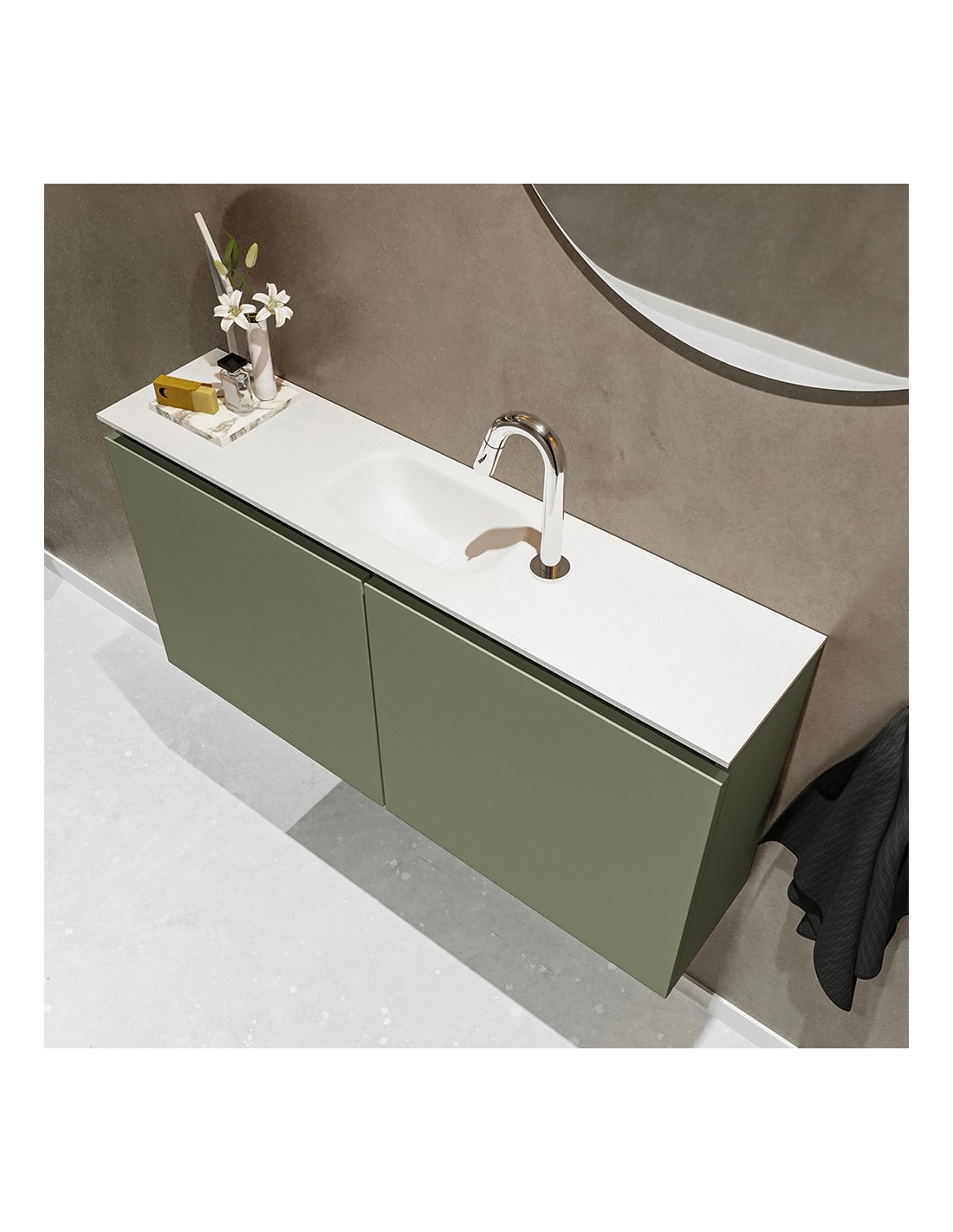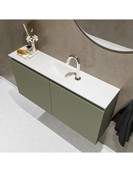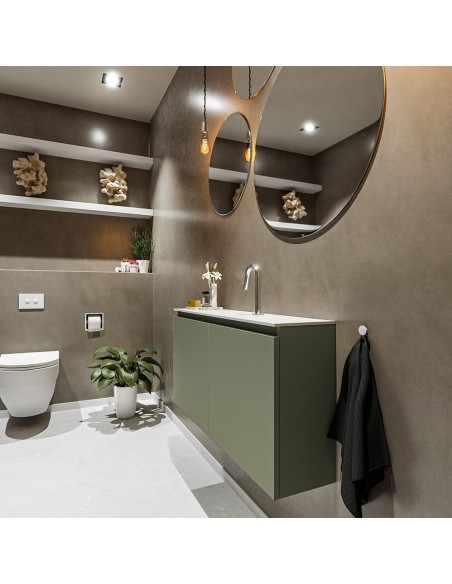 TURE Komplet badmiljø centreret håndvask B100 cm MDF - Armygrøn/Talkum