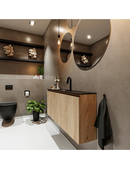 TURE Komplet badmiljø centreret håndvask B120 cm MDF - Vasket eg/Sort