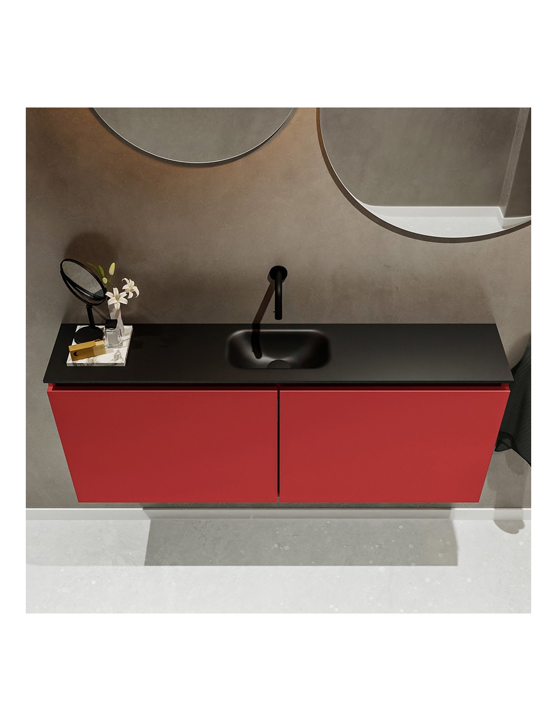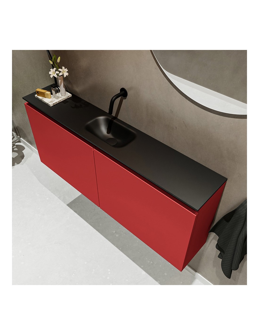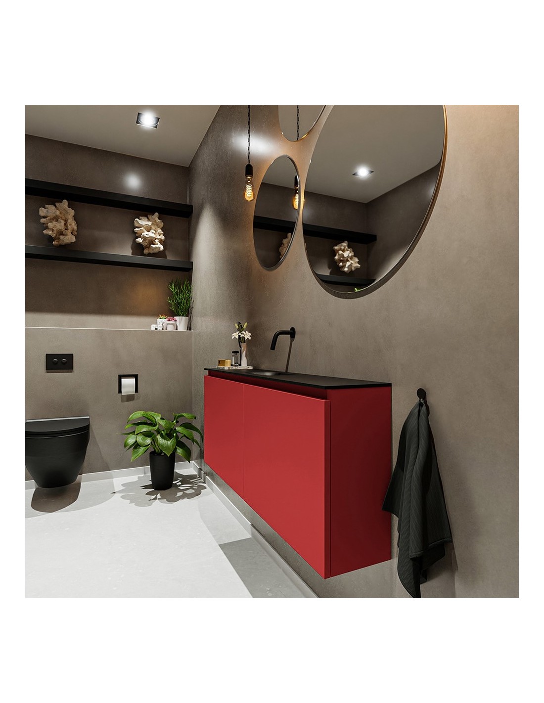 TURE Komplet badmiljø centreret håndvask B120 cm MDF - Rød/Sort