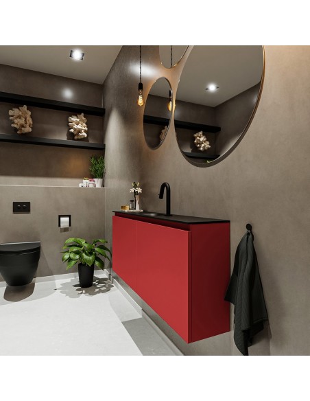 TURE Komplet badmiljø centreret håndvask B120 cm MDF - Rød/Sort