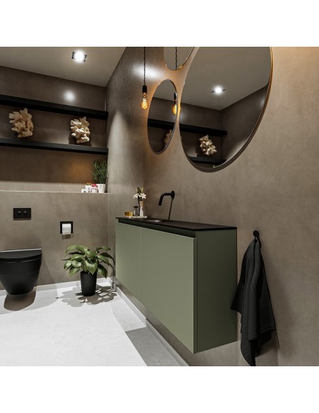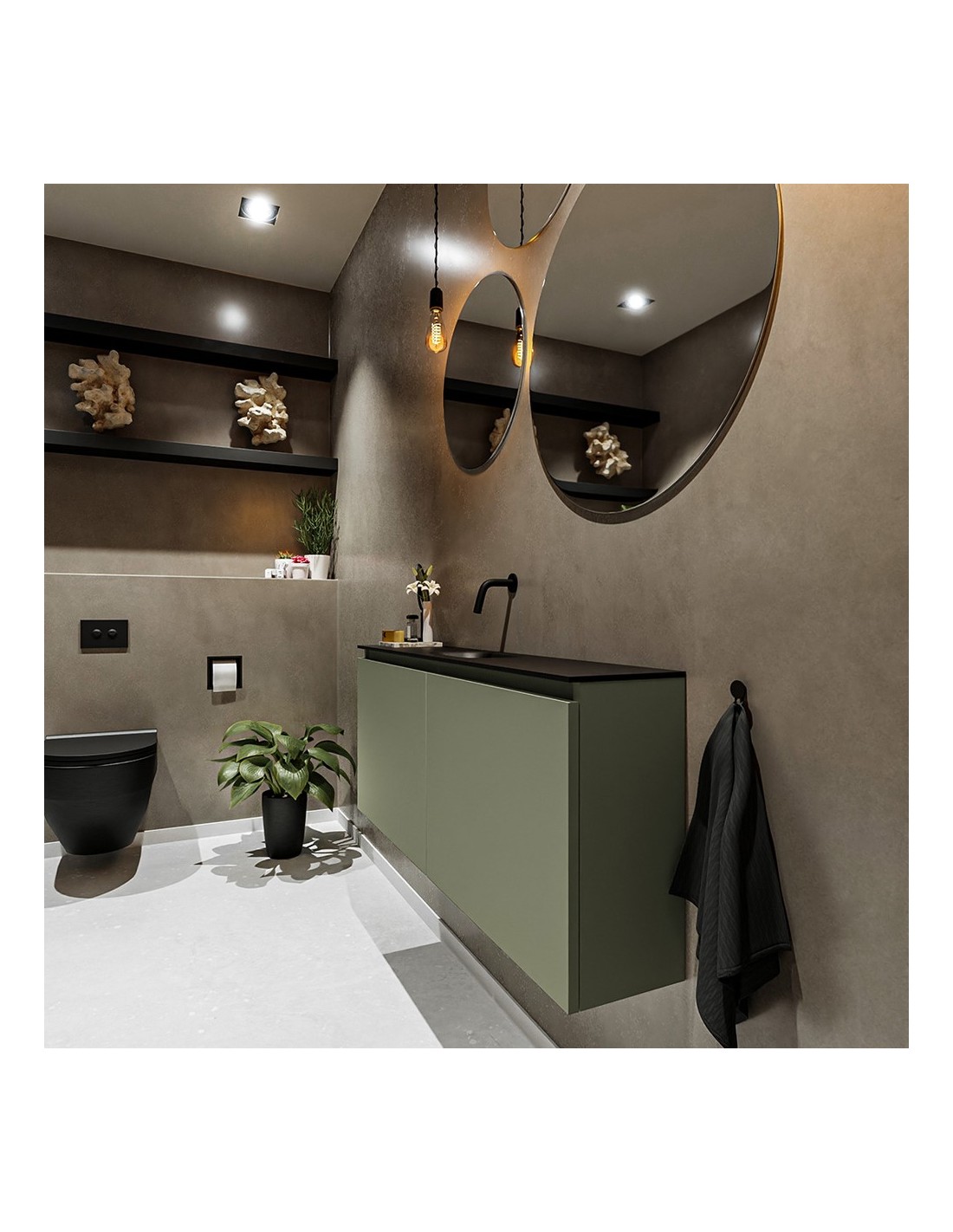 TURE Komplet badmiljø centreret håndvask B120 cm MDF - Armygrøn/Sort