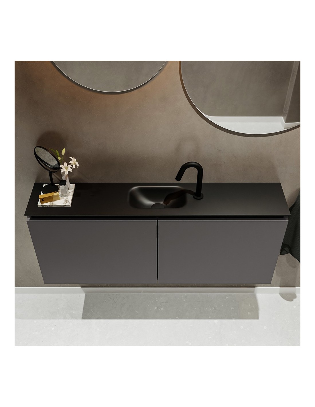 TURE Komplet badmiljø centreret håndvask B120 cm MDF - Mørkegrå/Sort