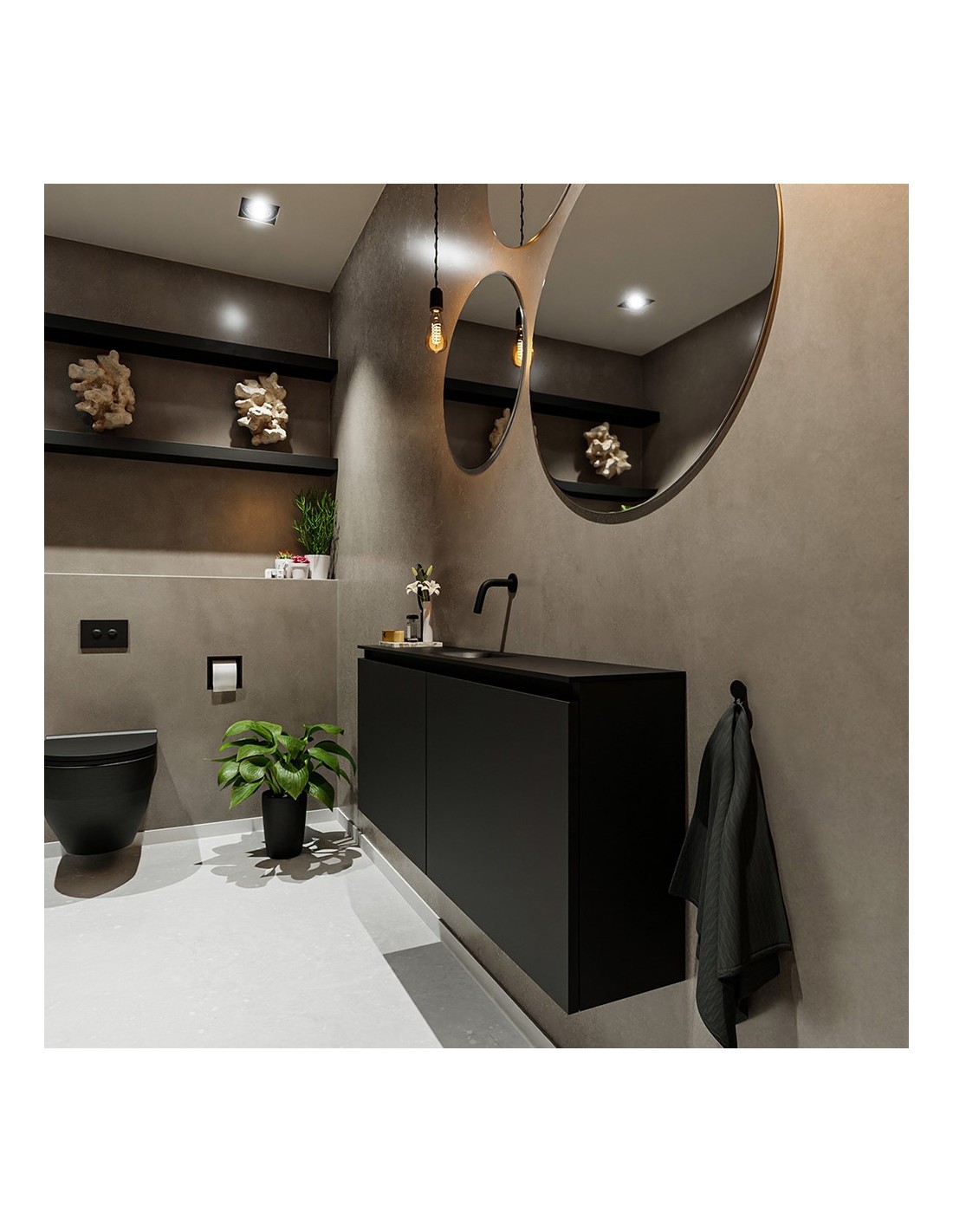 TURE Komplet badmiljø centreret håndvask B120 cm MDF - Sort/Sort