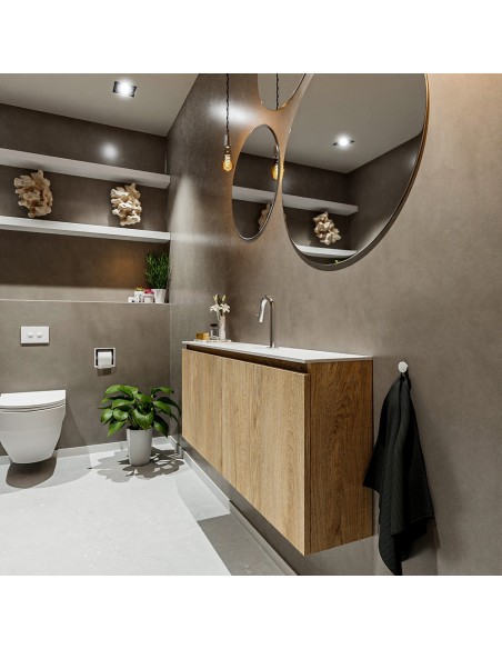 TURE Komplet badmiljø centreret håndvask B120 cm MDF - Vasket eg/Talkum