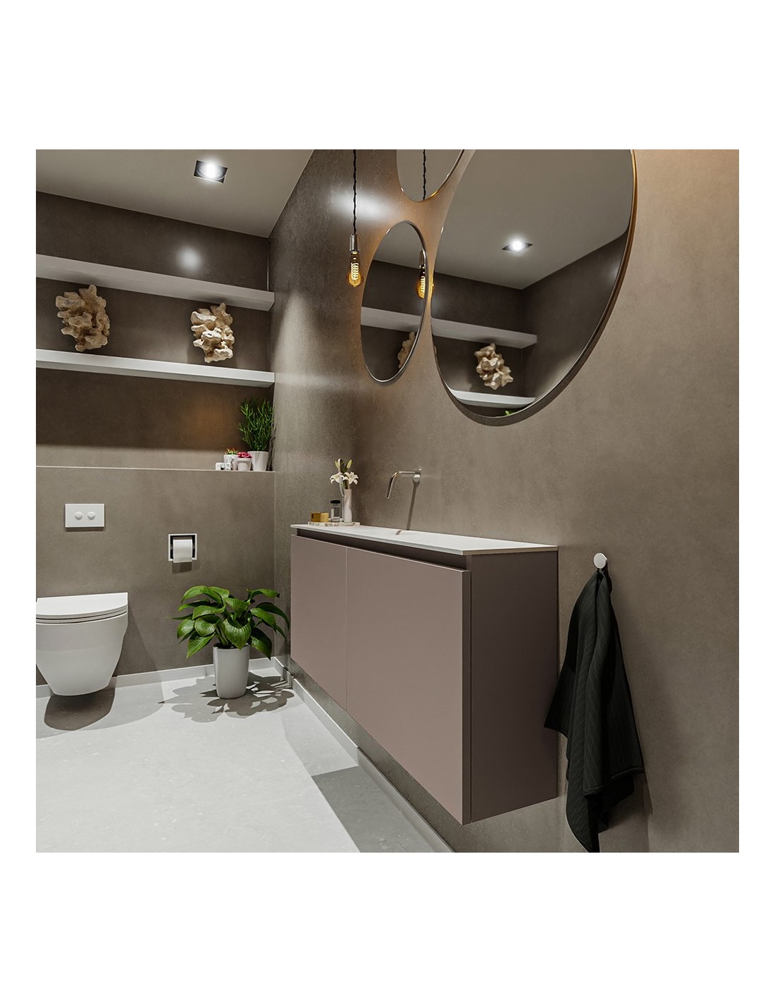 TURE Komplet badmiljø centreret håndvask B120 cm MDF - Røg/Talkum