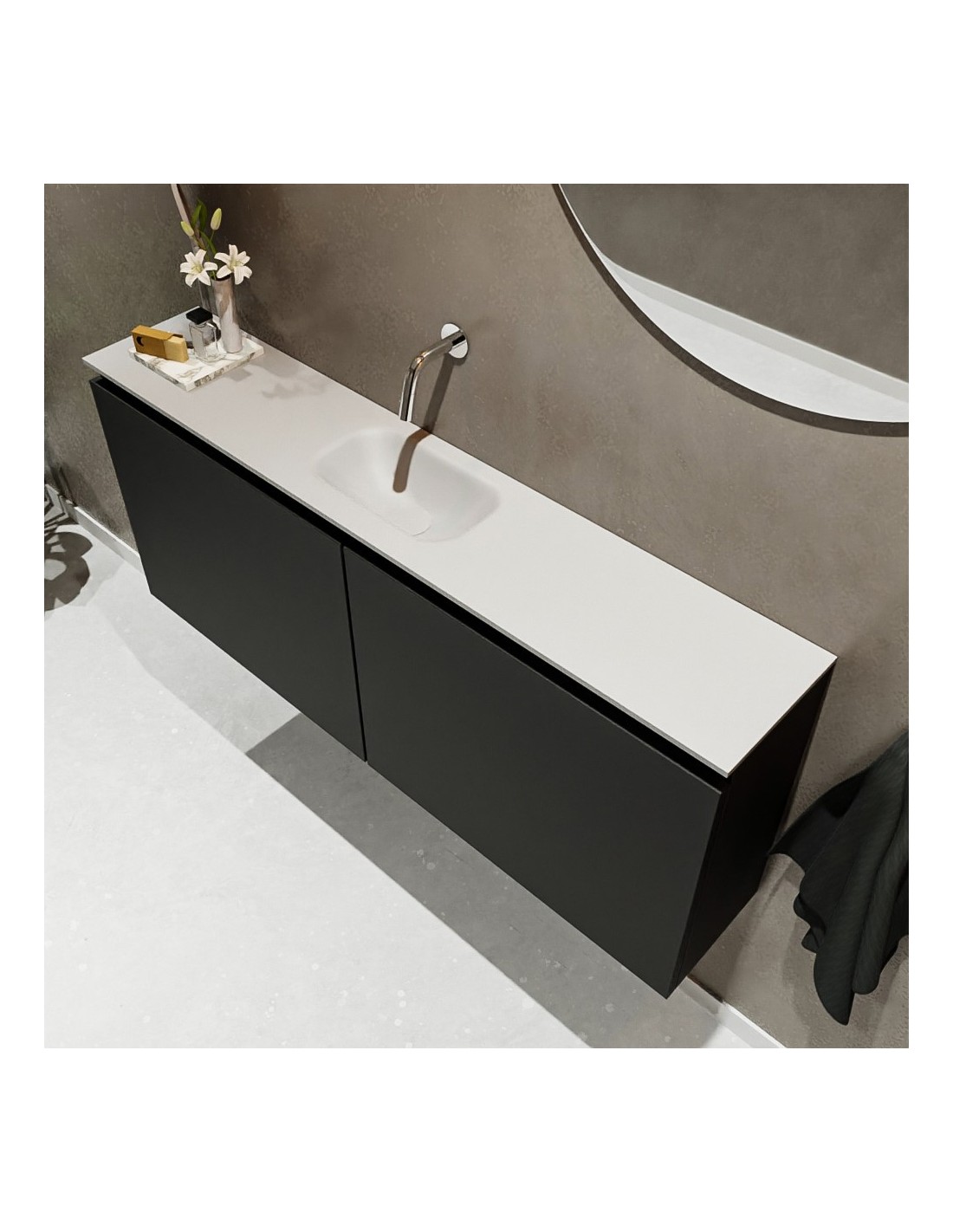 TURE Komplet badmiljø centreret håndvask B120 cm MDF - Sort/Talkum