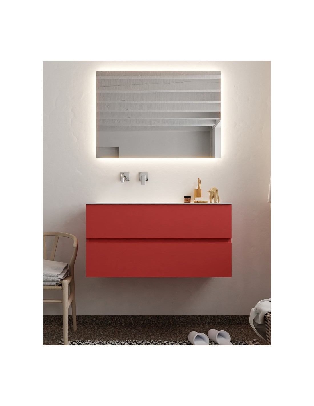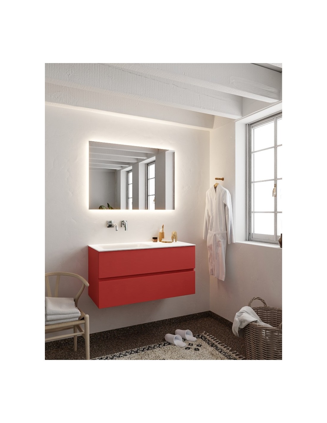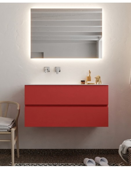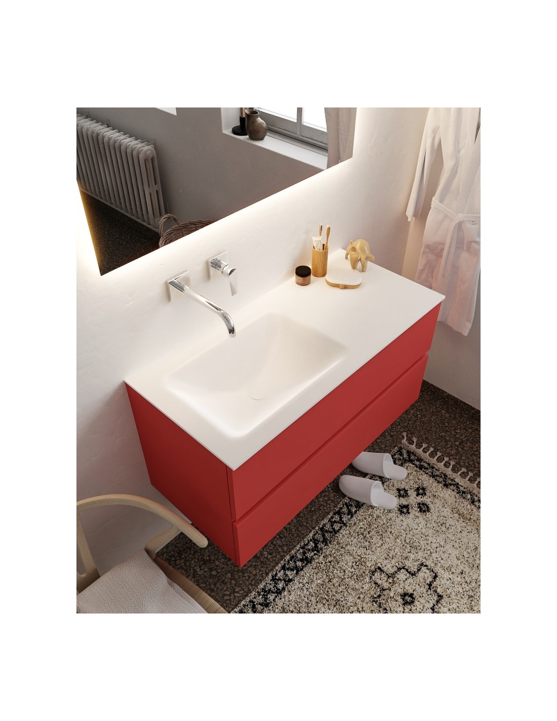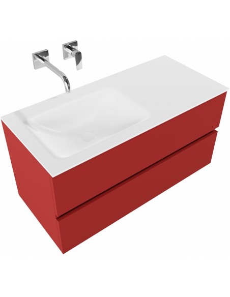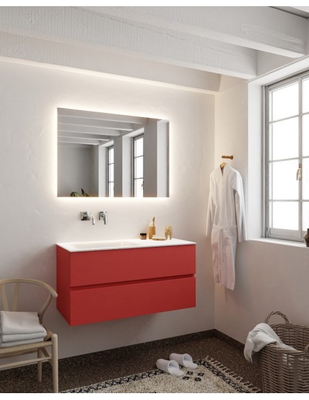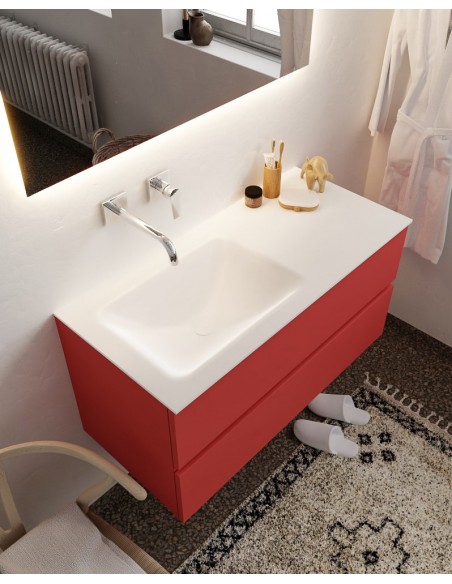 Vica Komplet badmiljø venstrevendt håndvask B100 cm MDF - Rød/Talkum