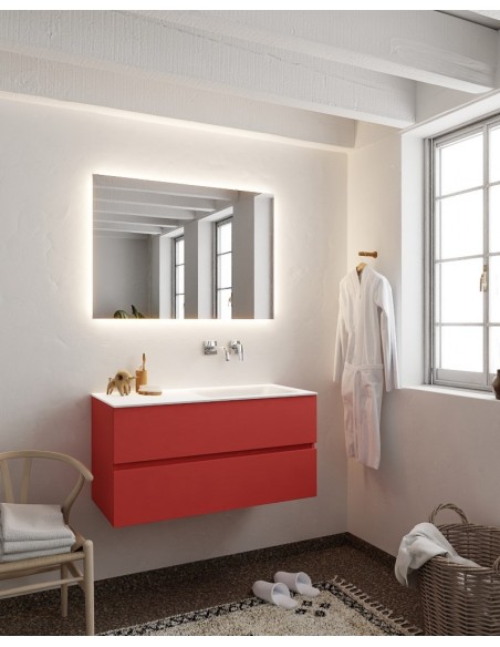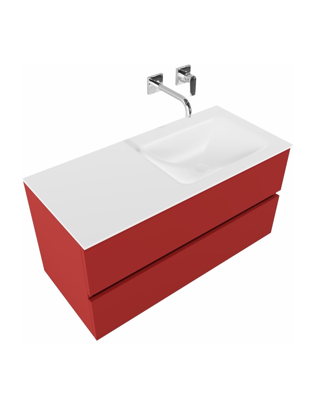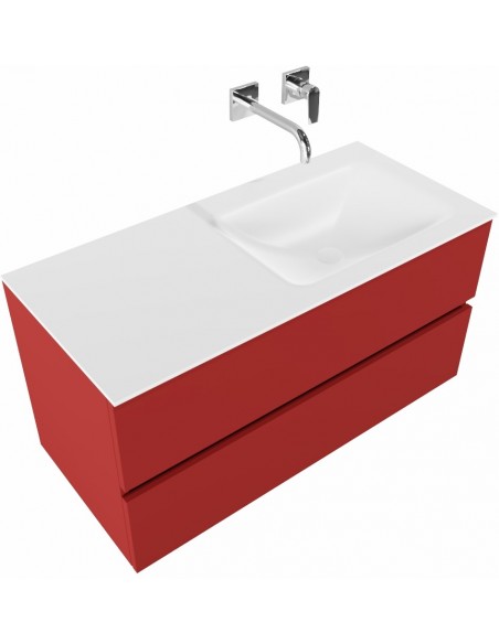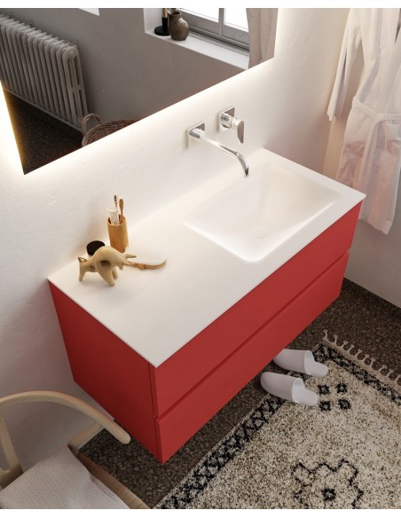 Vica Komplet badmiljø højrevendt håndvask B100 cm MDF - Rød/Talkum