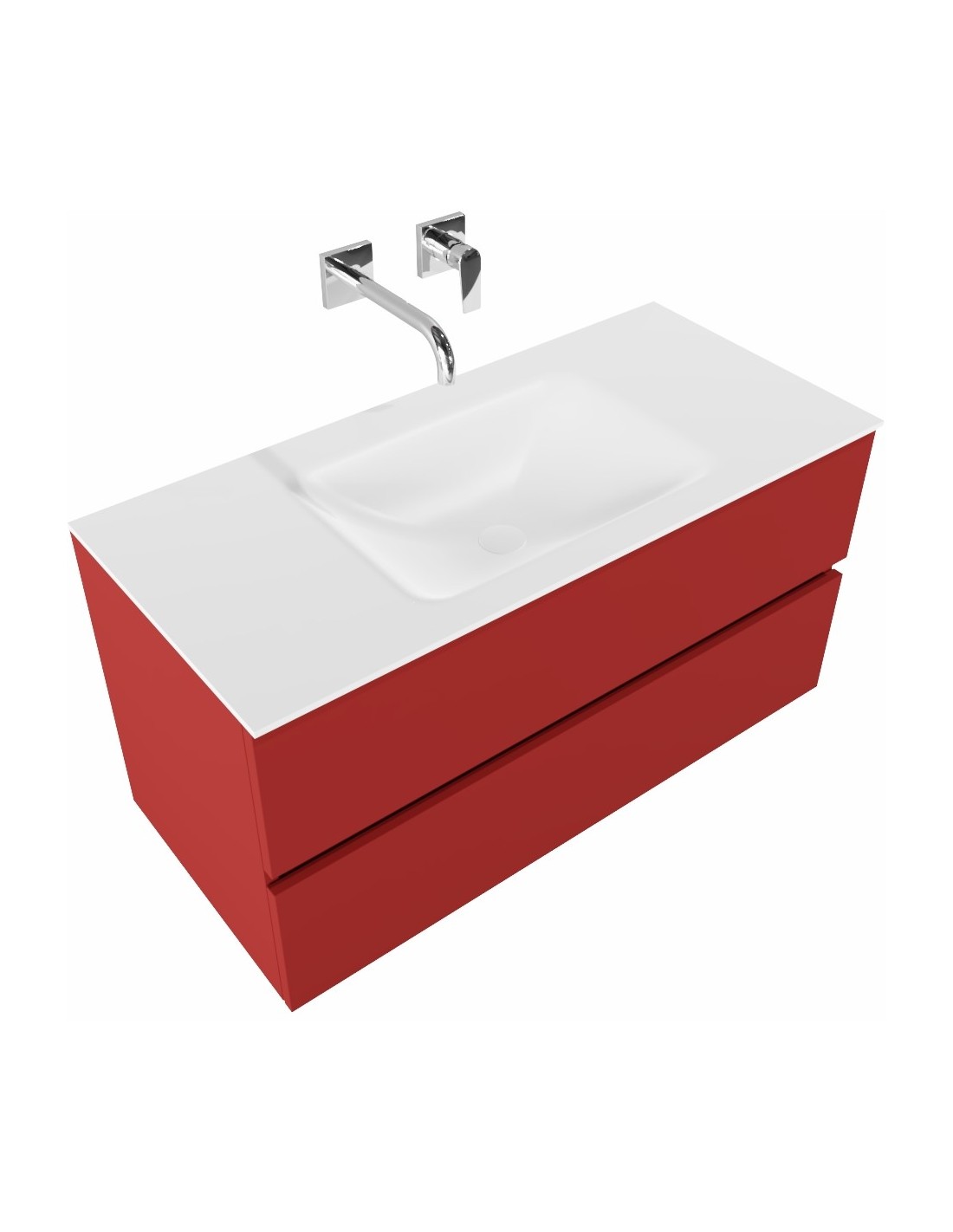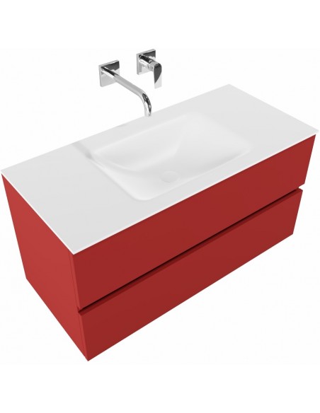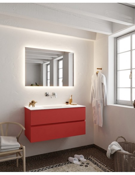 Vica Komplet badmiljø centreret håndvask B100 cm MDF - Rød/Talkum