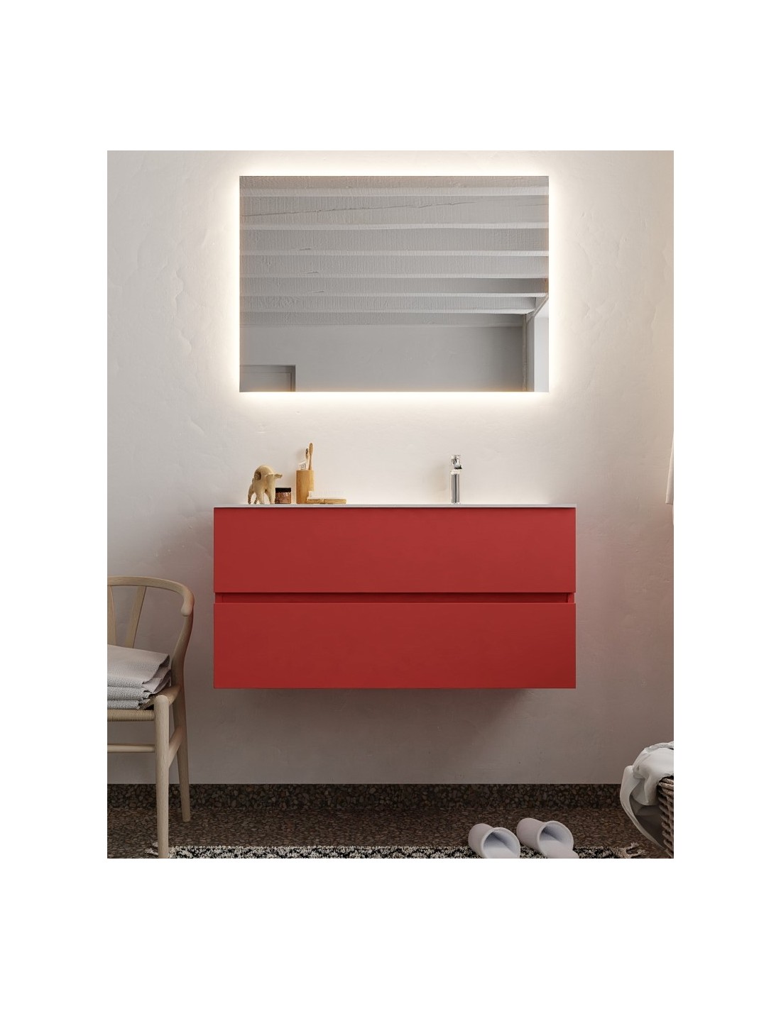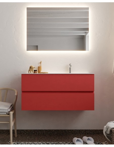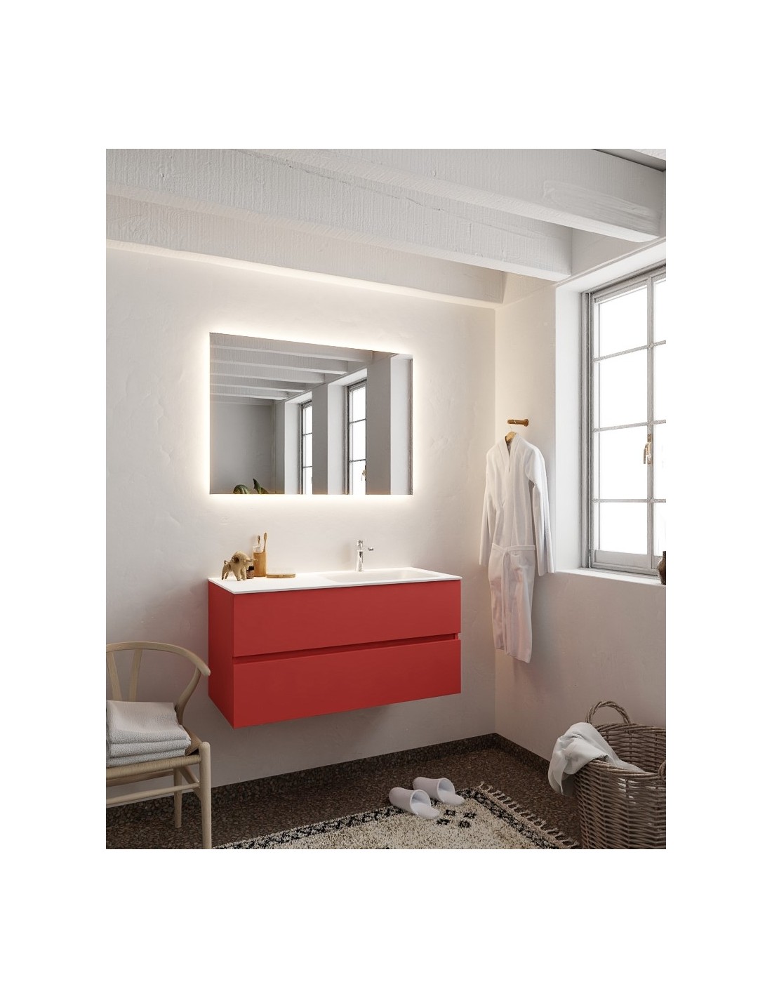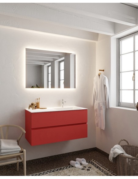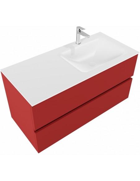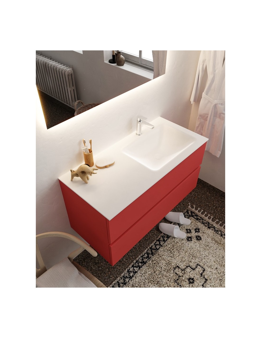 Vica Komplet badmiljø højrevendt håndvask B100 cm MDF - Rød/Talkum