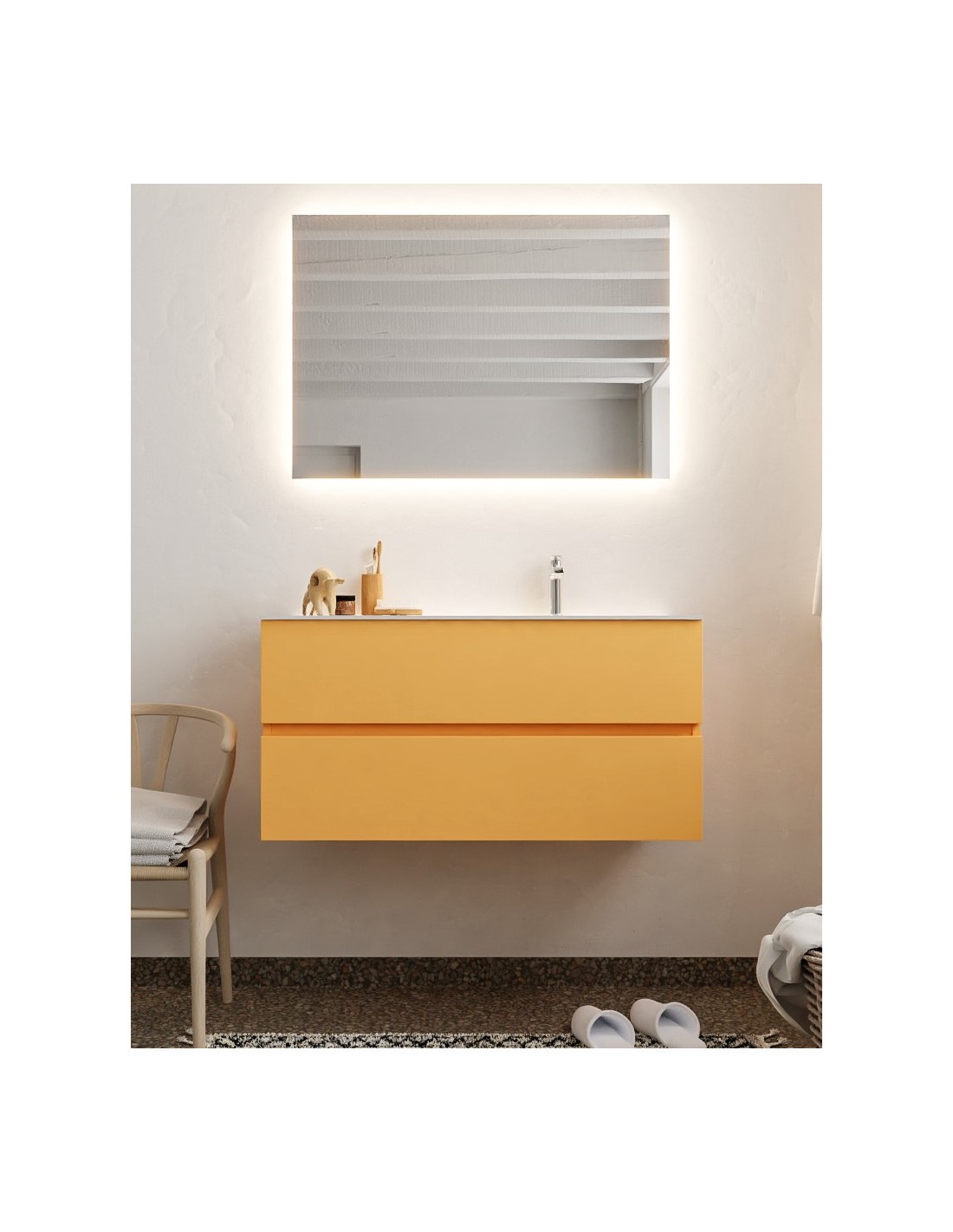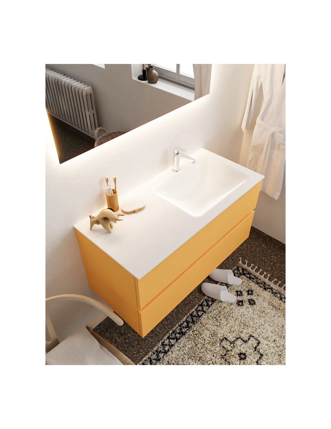 Vica Komplet badmiljø højrevendt håndvask B100 cm MDF - Okker/Talkum
