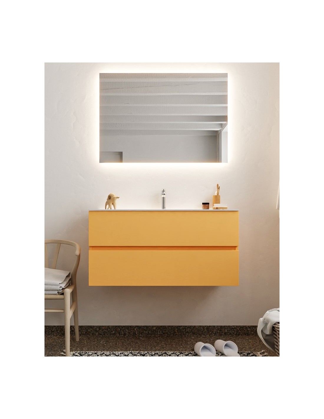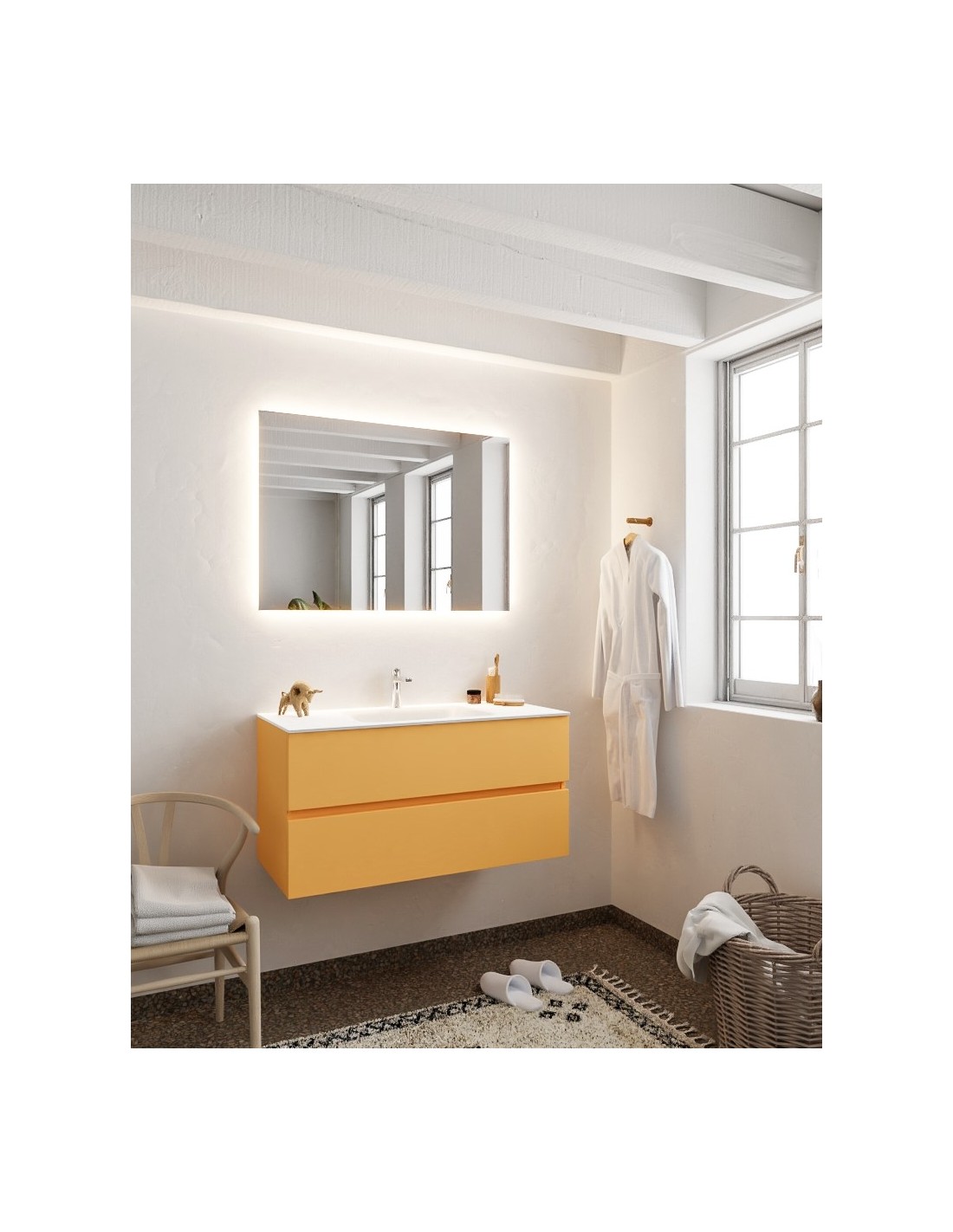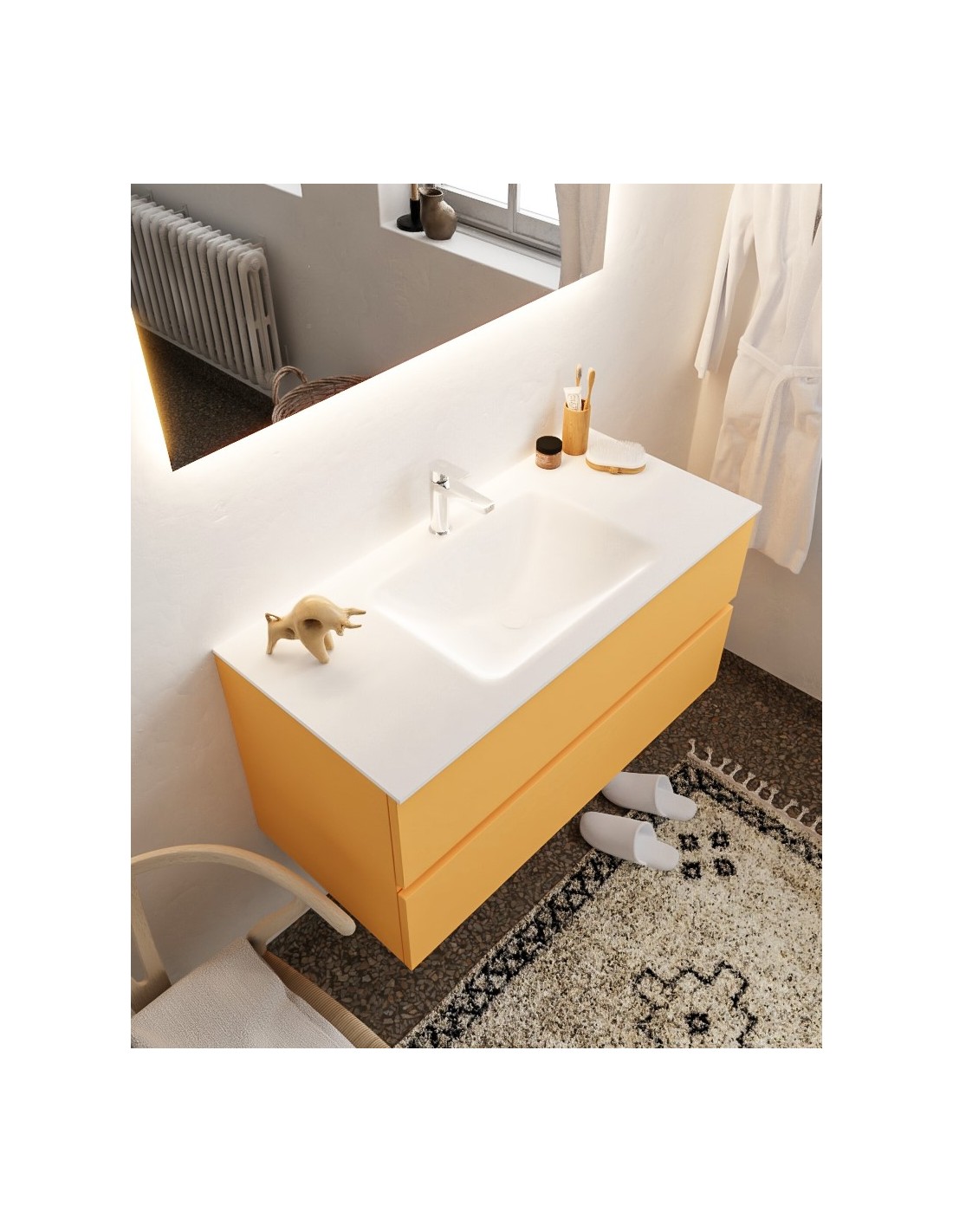 Vica Komplet badmiljø centreret håndvask B100 cm MDF - Okker/Talkum