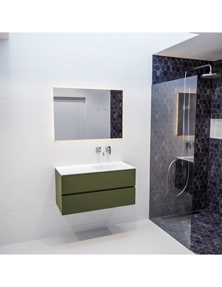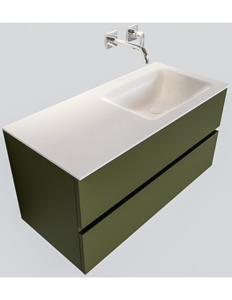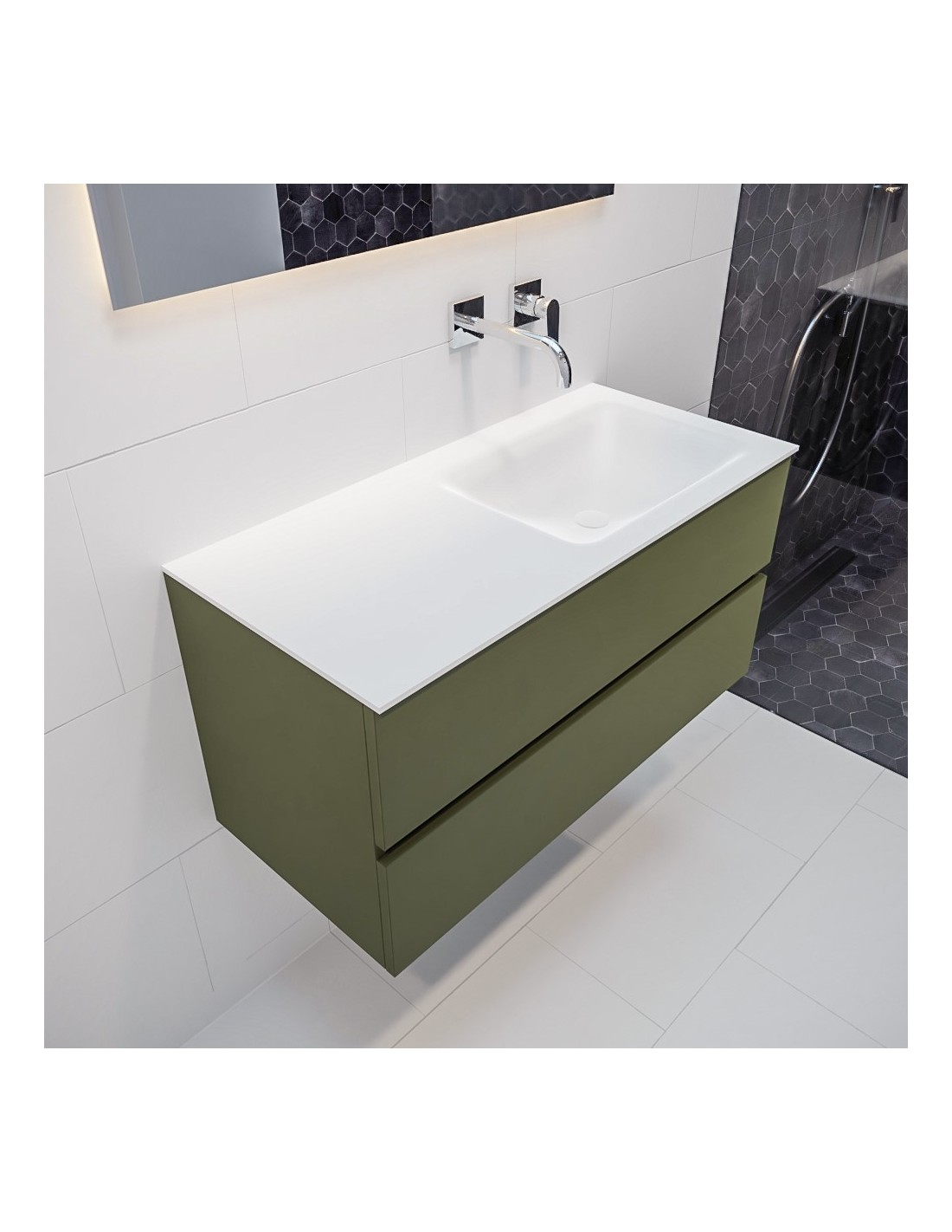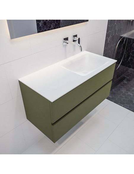 Vica Komplet badmiljø højrevendt håndvask B100 cm MDF - Armygrøn/Talkum