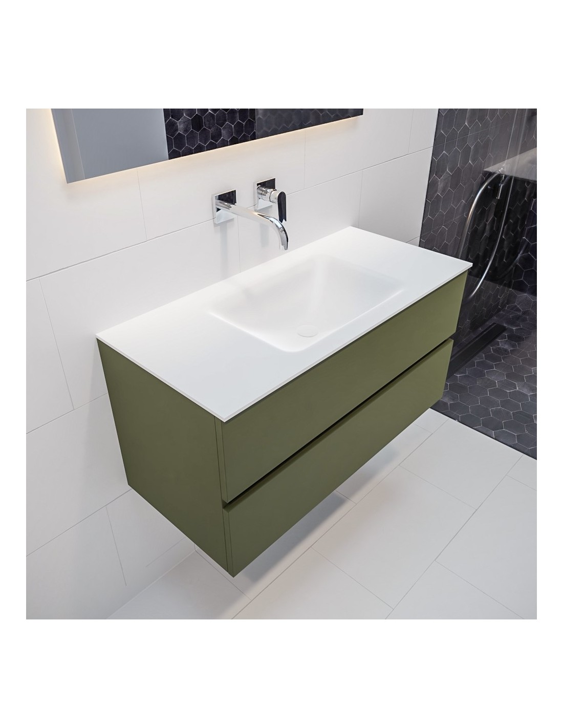 Vica Komplet badmiljø centreret håndvask B100 cm MDF - Armygrøn/Talkum
