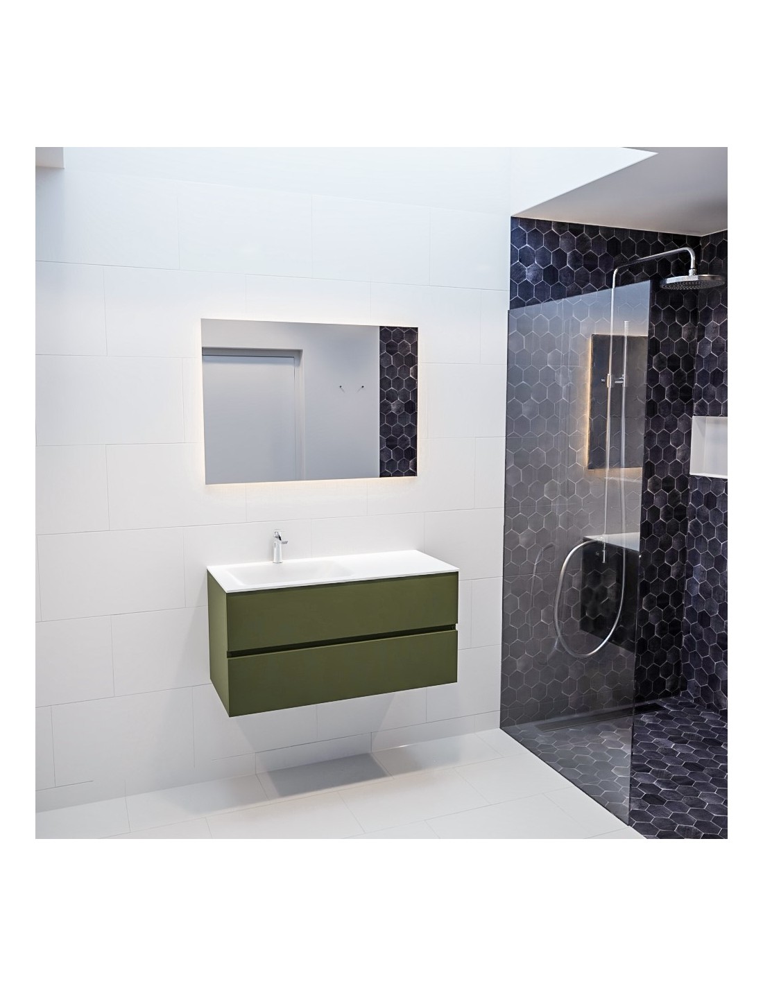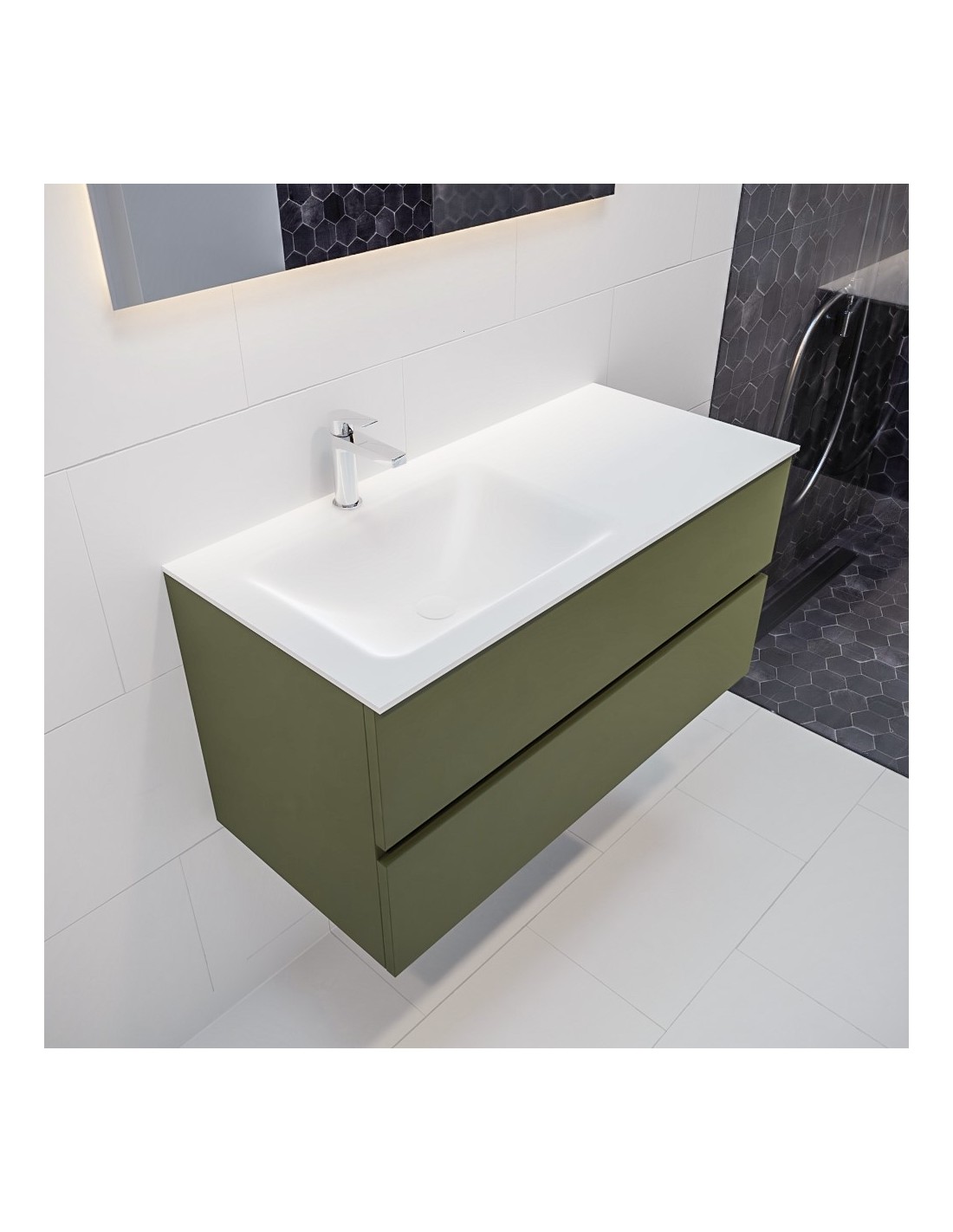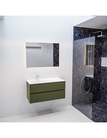 Vica Komplet badmiljø venstrevendt håndvask B100 cm MDF - Armygrøn/Talkum