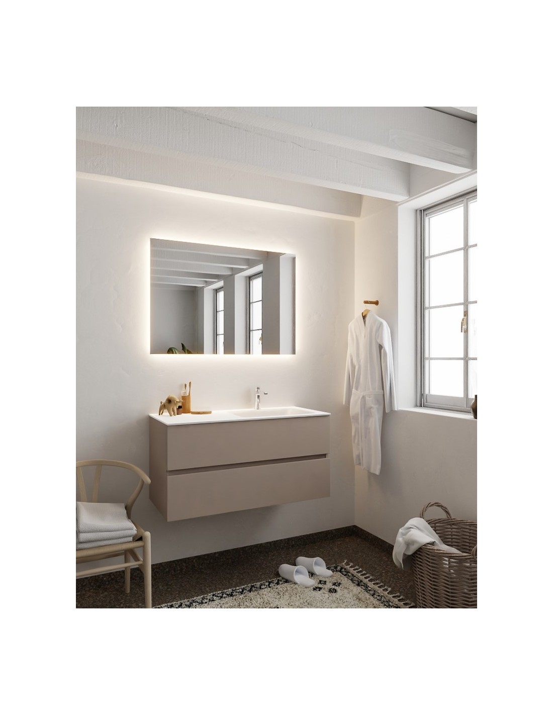 Vica Komplet badmiljø højrevendt håndvask B100 cm MDF - Røg/Talkum