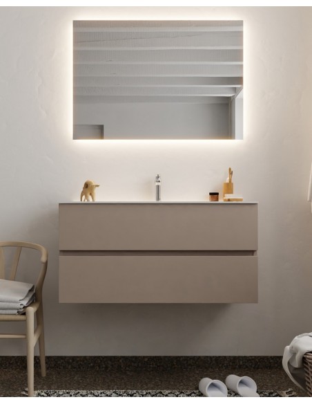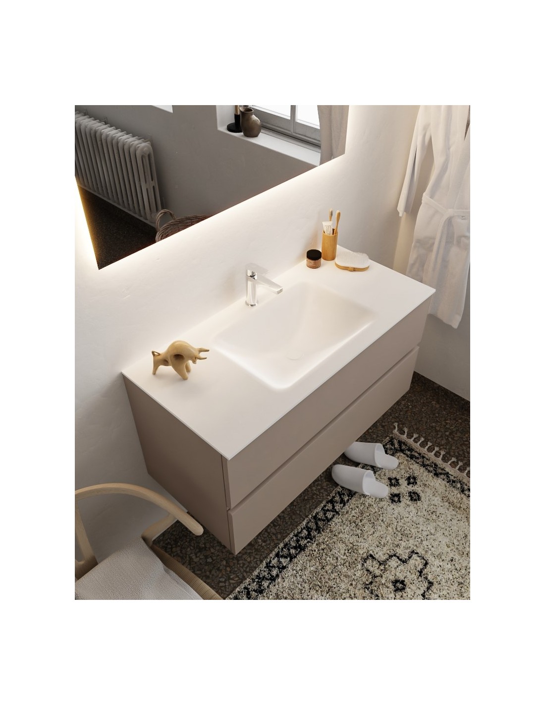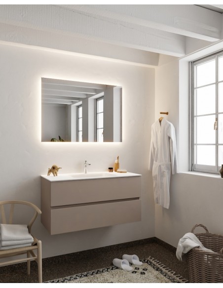 Vica Komplet badmiljø centreret håndvask B100 cm MDF - Røg/Talkum