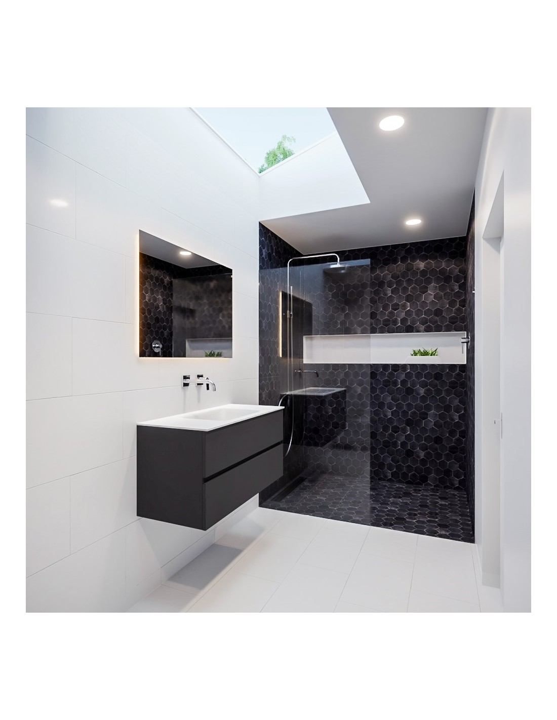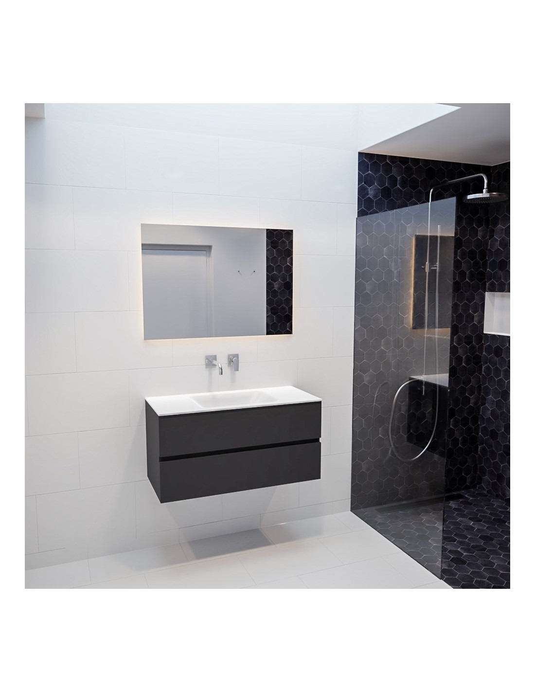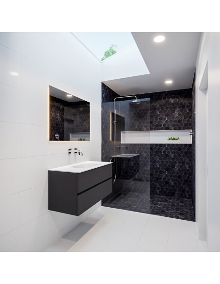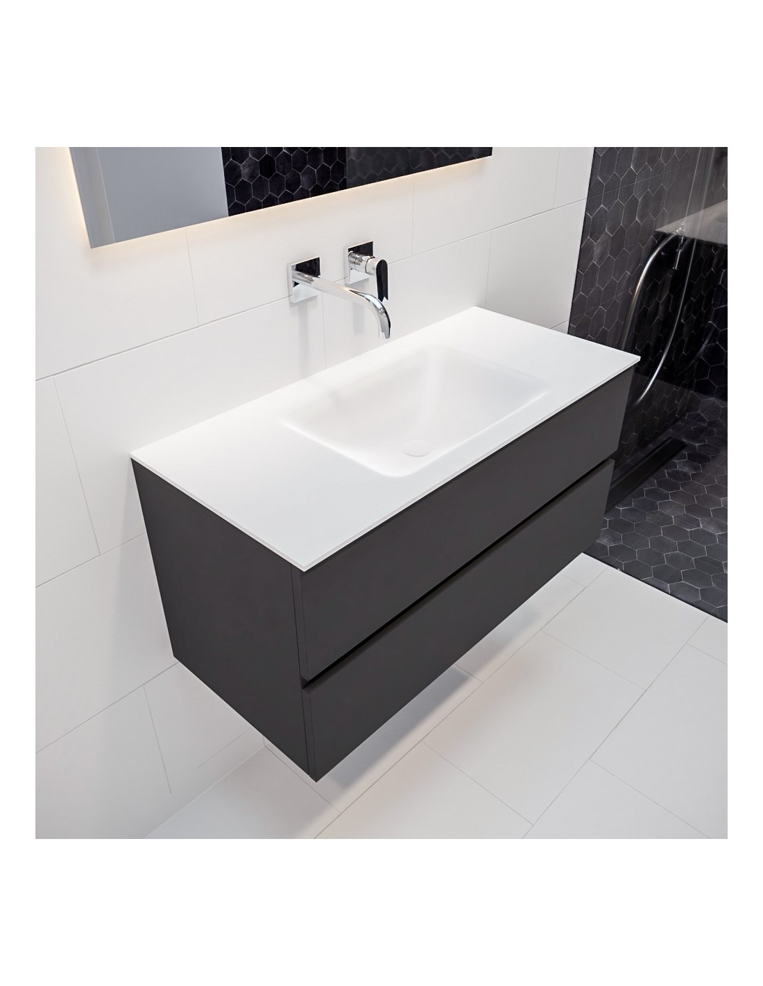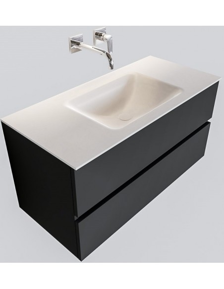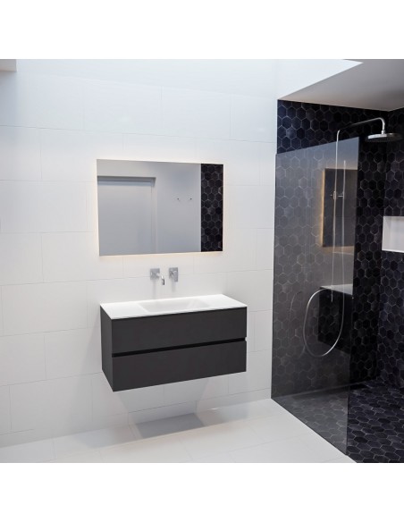 Vica Komplet badmiljø centreret håndvask B100 cm MDF - Mørkegrå/Talkum