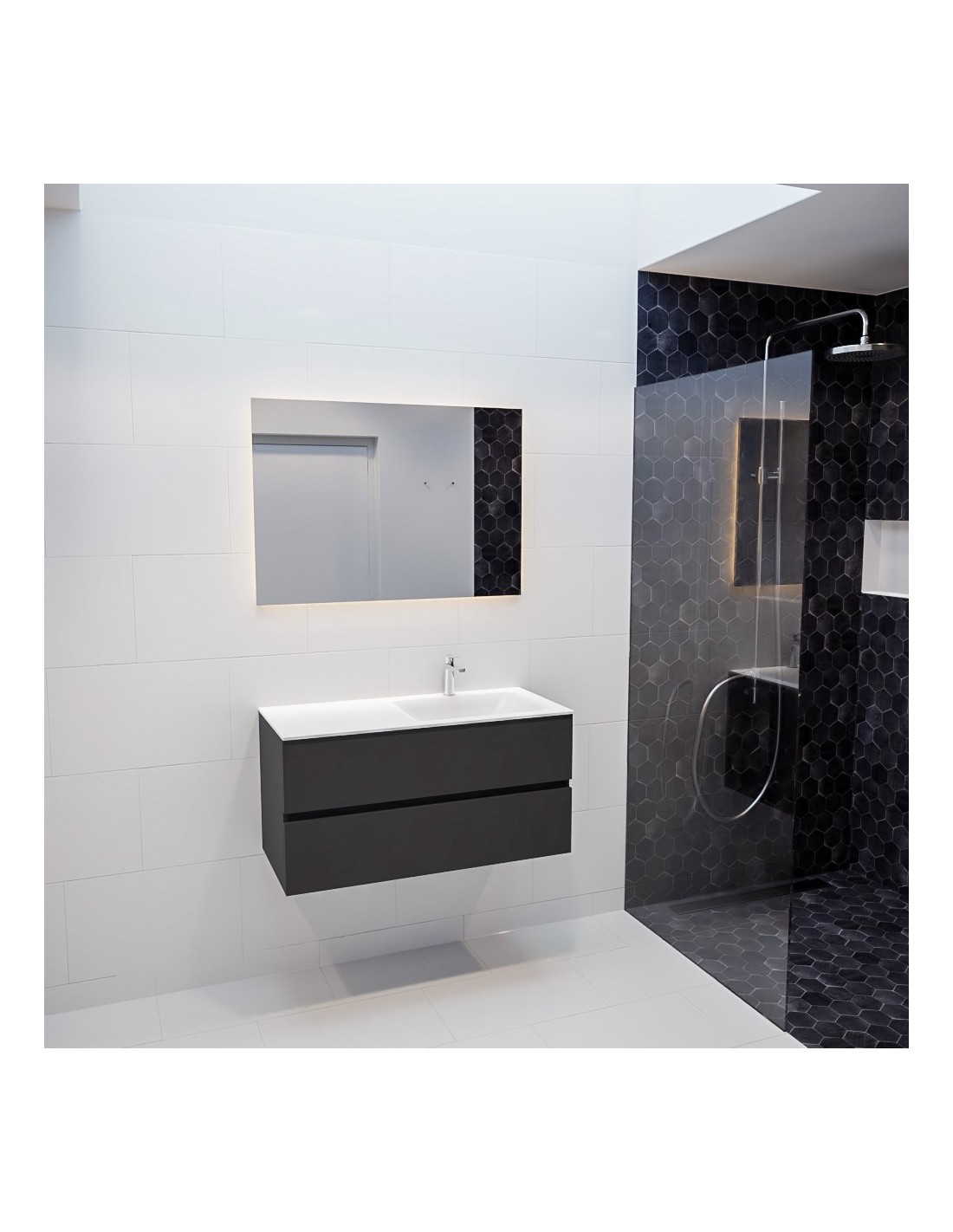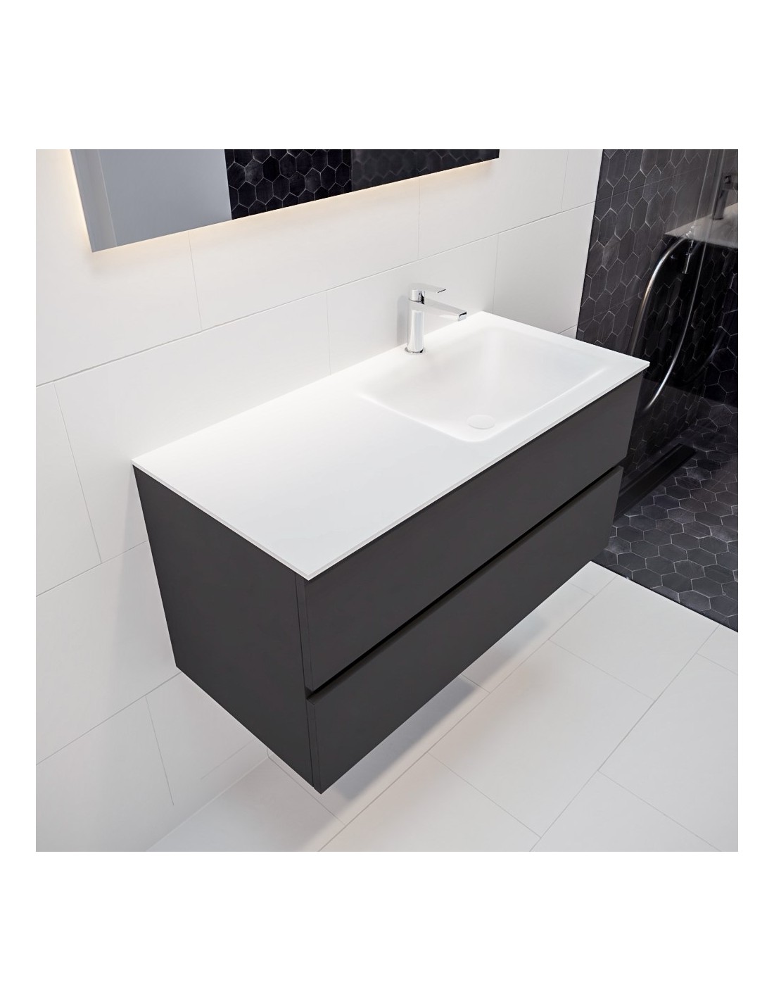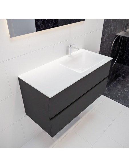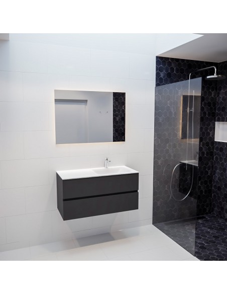 Vica Komplet badmiljø højrevendt håndvask B100 cm MDF - Mørkegrå/Talkum