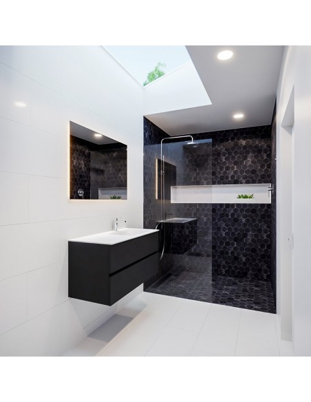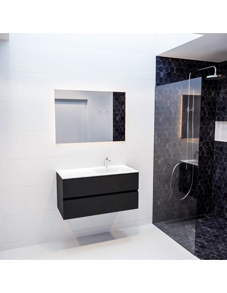Vica Komplet badmiljø højrevendt håndvask B100 cm MDF - Sort/Talkum