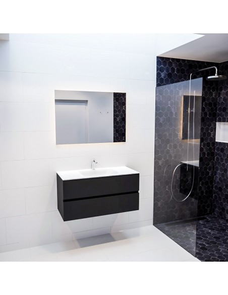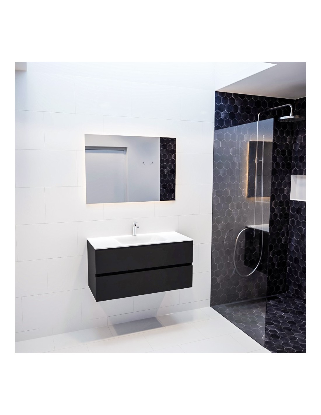 Vica Komplet badmiljø centreret håndvask B100 cm MDF - Sort/Talkum