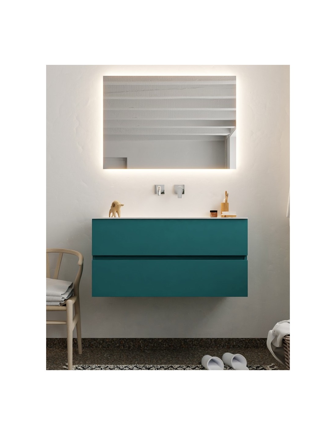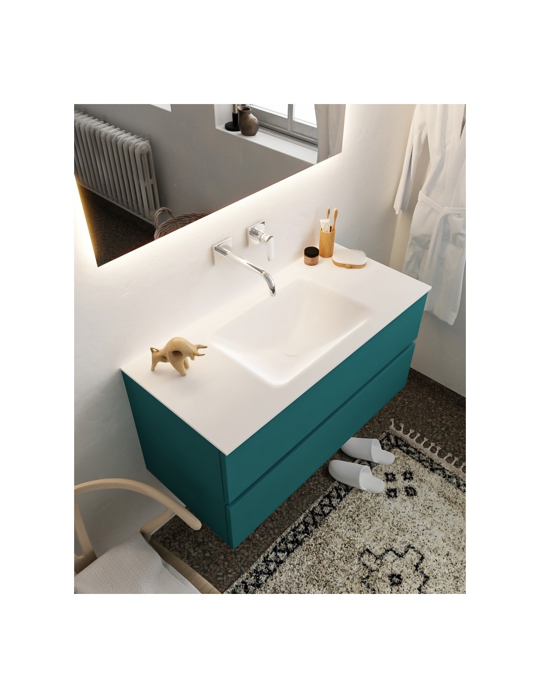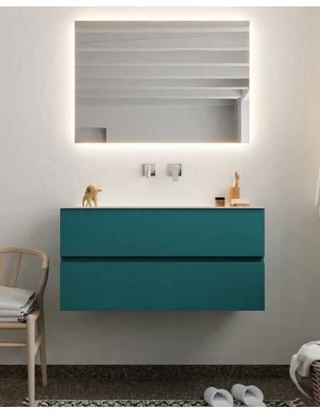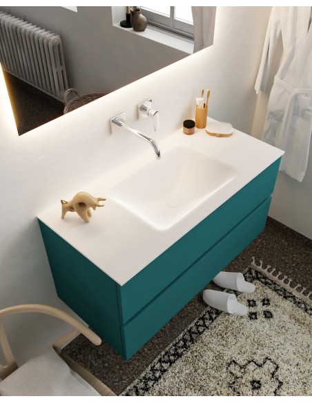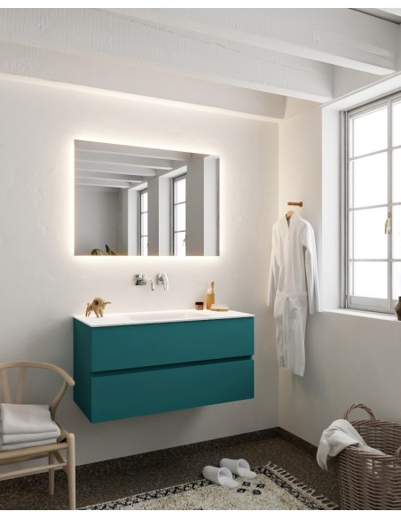 Vica Komplet badmiljø centreret håndvask B100 cm MDF - Petrolium/Talkum