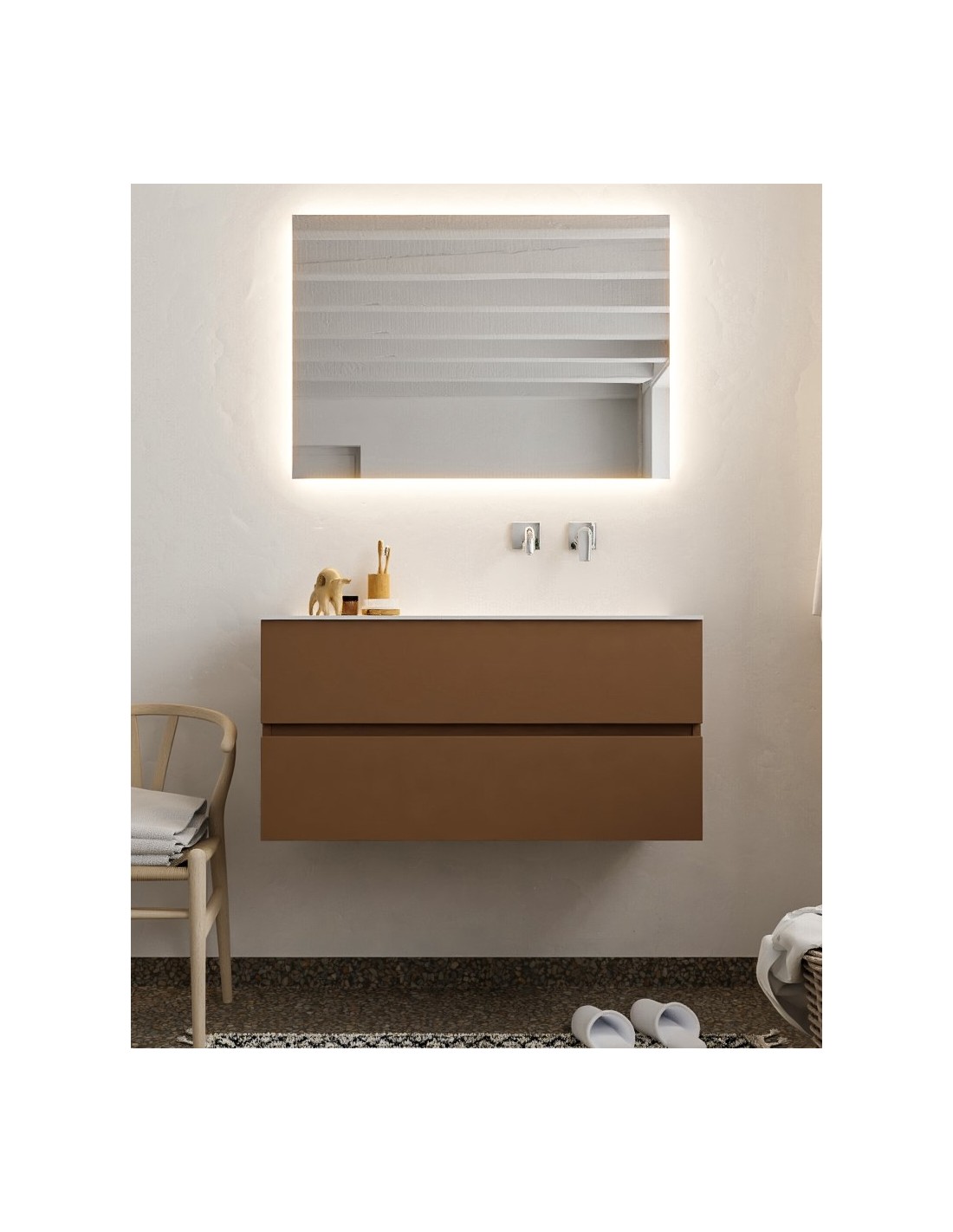 Vica Komplet badmiljø højrevendt håndvask B100 cm MDF - Rust/Talkum