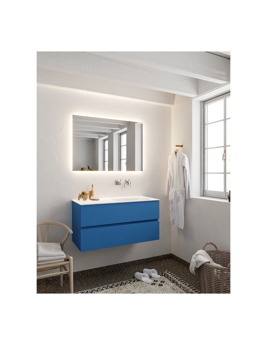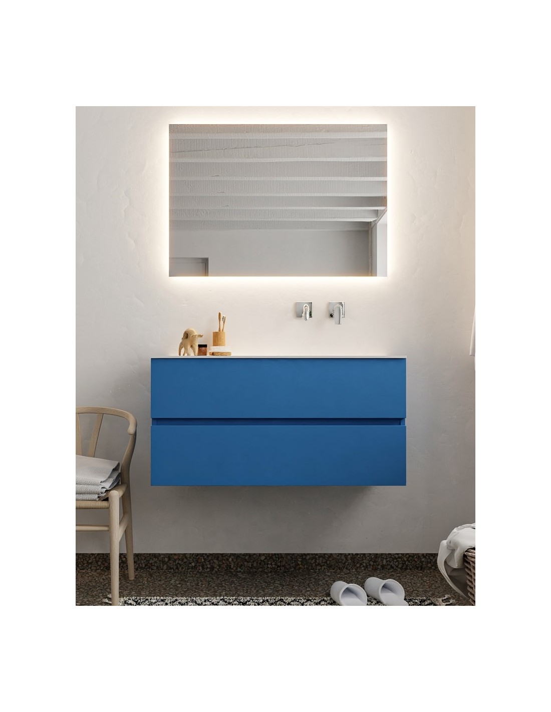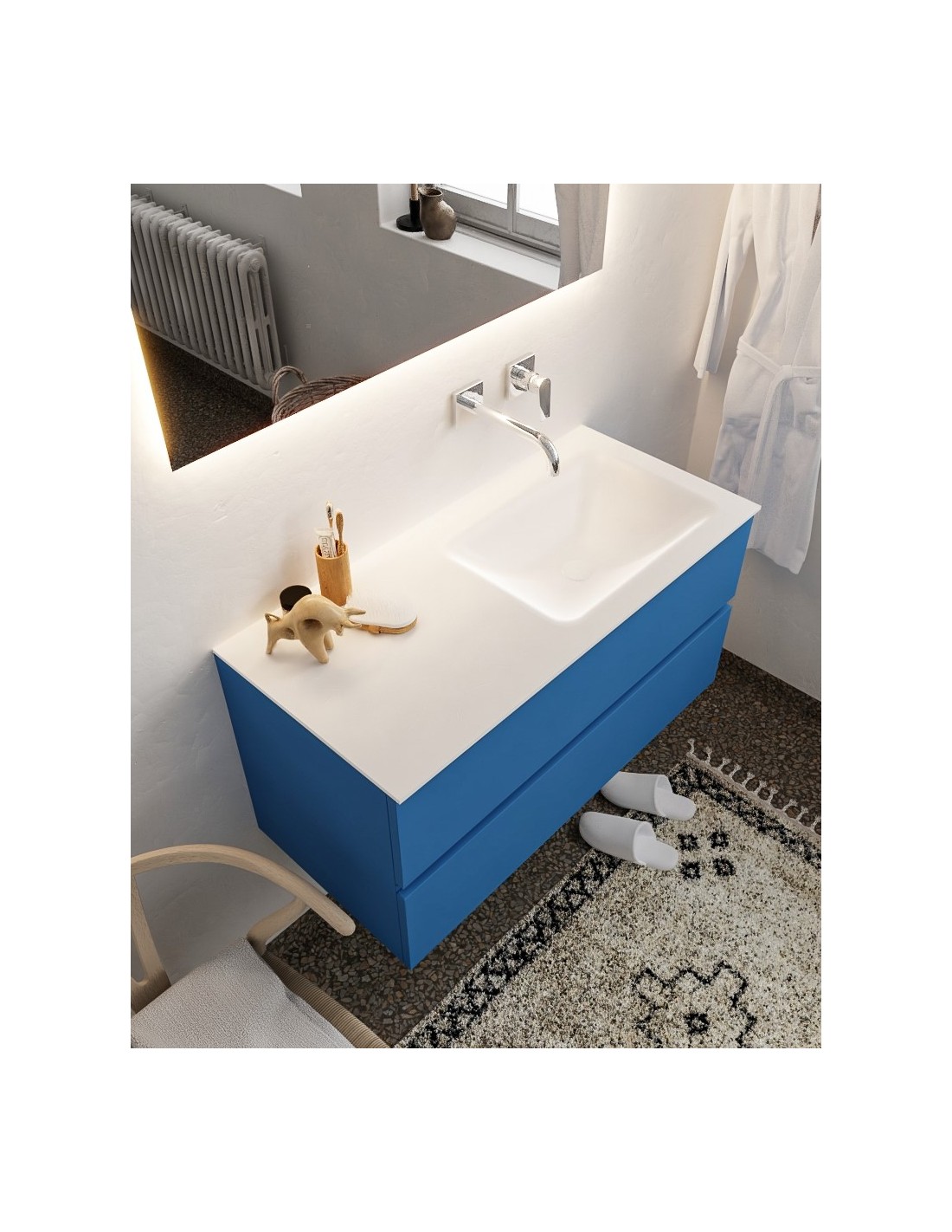 Vica Komplet badmiljø højrevendt håndvask B100 cm MDF - Jeansblå/Talkum