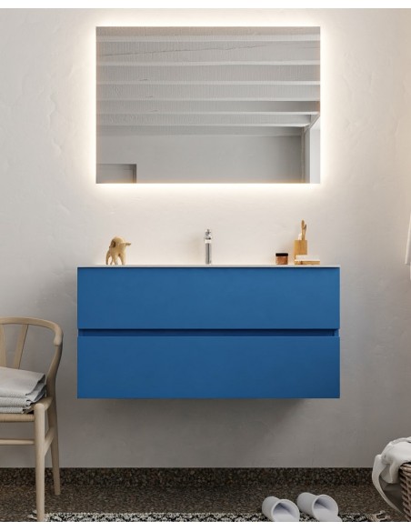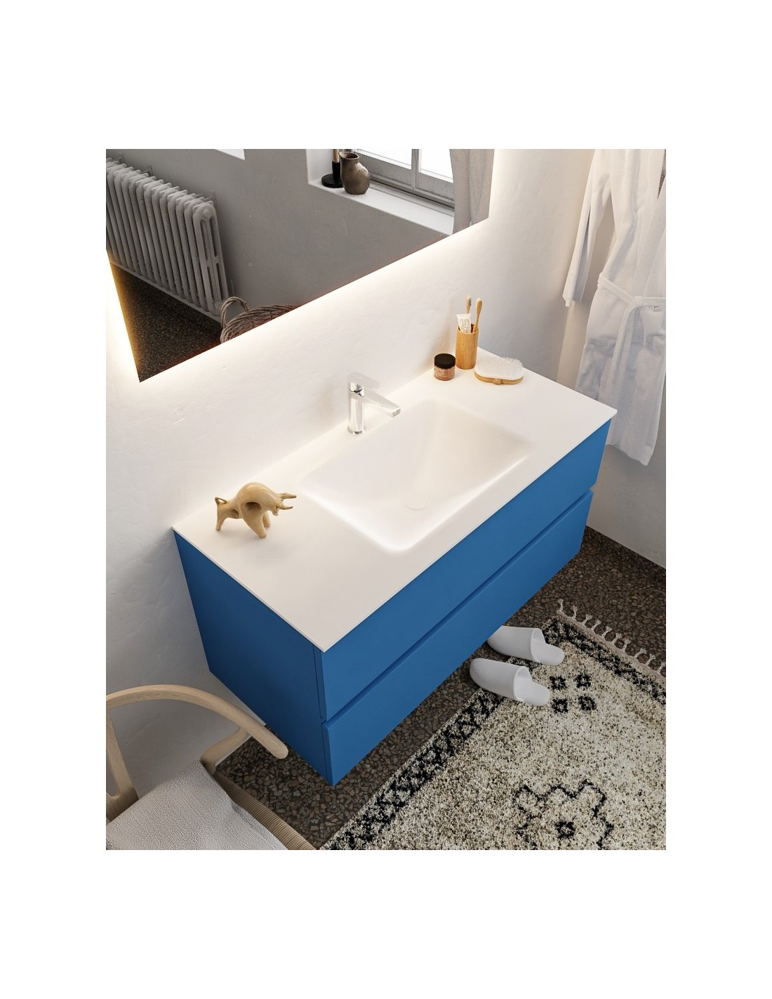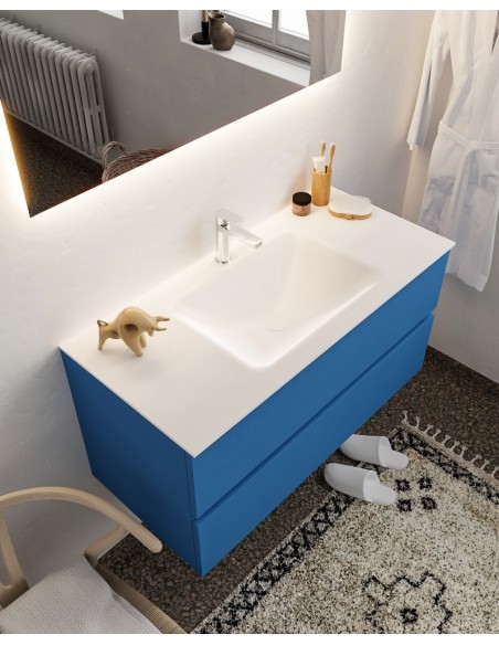 Vica Komplet badmiljø centreret håndvask B100 cm MDF - Jeansblå/Talkum