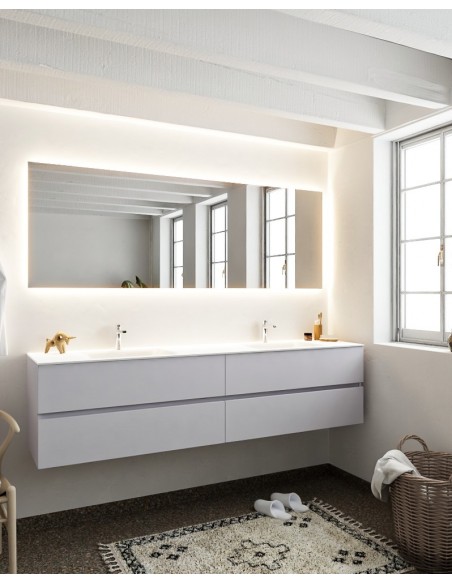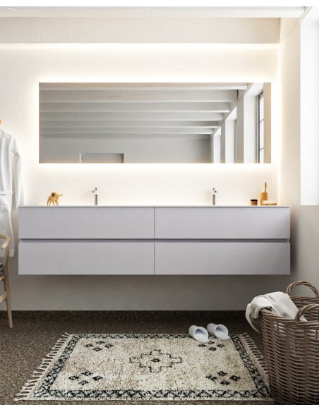 Vica Komplet badmiljø dobbelt håndvask B200 cm MDF - Svag grå/Talkum