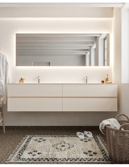 Vica Komplet badmiljø dobbelt håndvask B200 cm MDF - Linned/Talkum