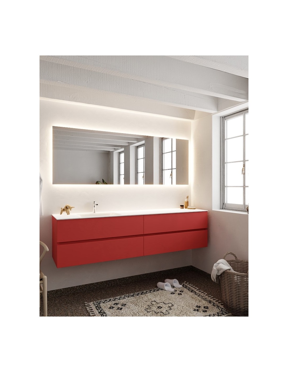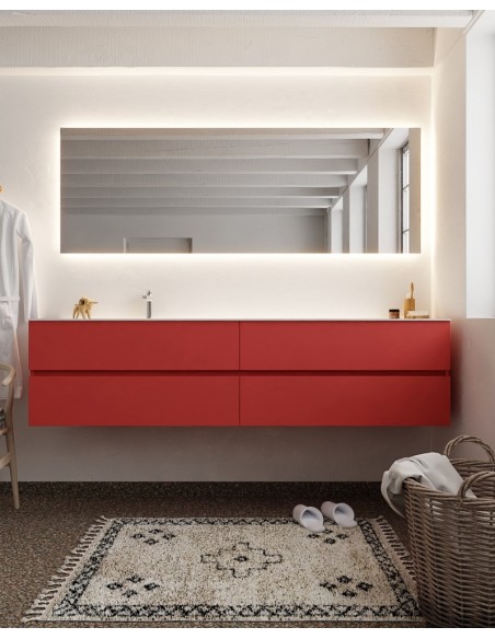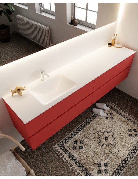 Vica Komplet badmiljø venstrevendt håndvask B200 cm MDF - Rød/Talkum