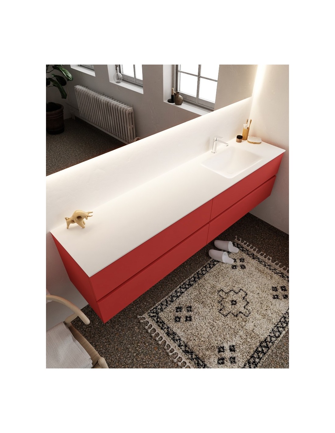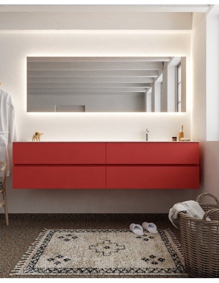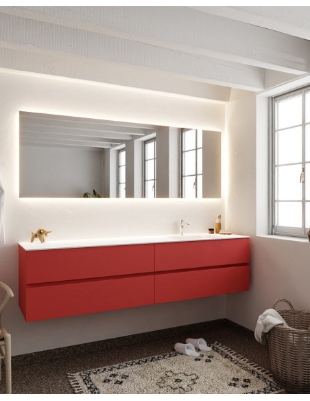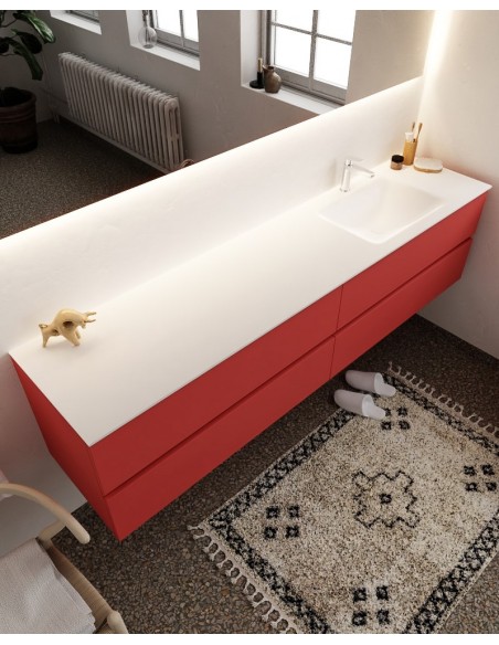 Vica Komplet badmiljø højrevendt håndvask B200 cm MDF - Rød/Talkum