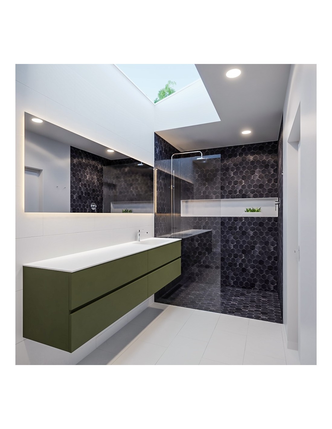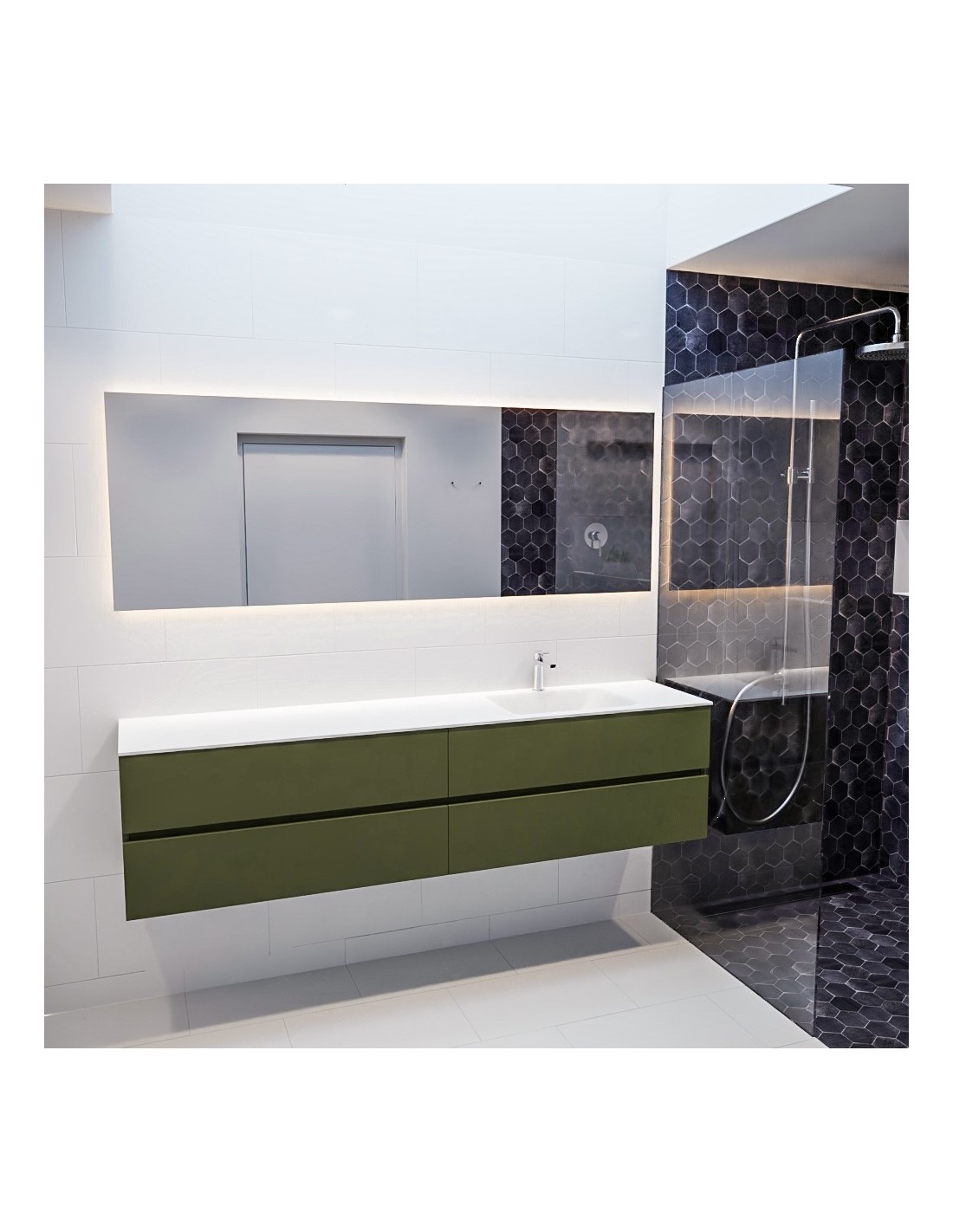 Vica Komplet badmiljø højrevendt håndvask B200 cm MDF - Armygrøn/Talkum