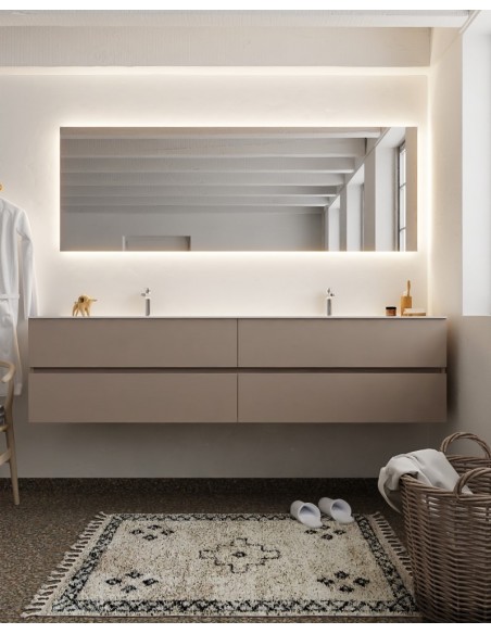 Vica Komplet badmiljø dobbelt håndvask B200 cm MDF - Røg/Talkum