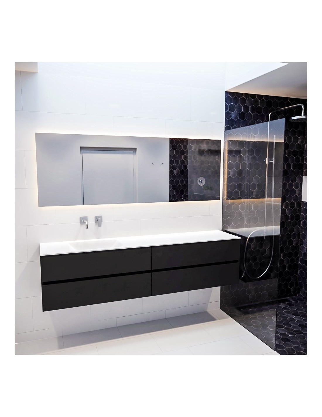 Vica Komplet badmiljø venstrevendt håndvask B200 cm MDF - Sort/Talkum
