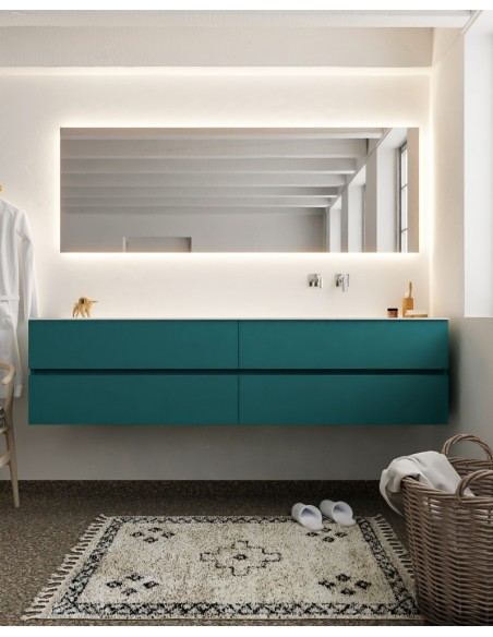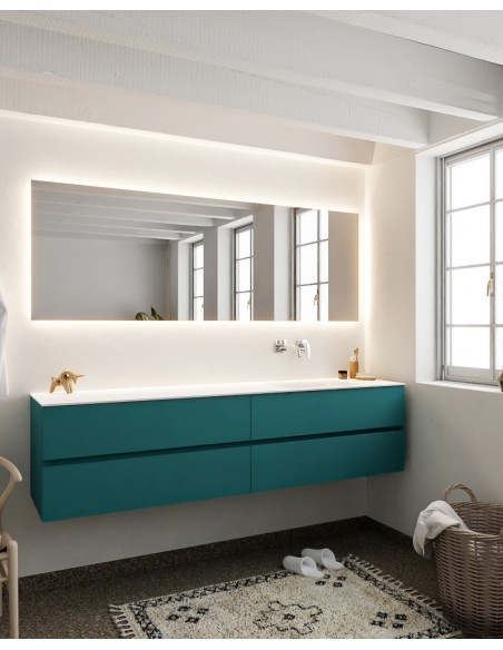 Vica Komplet badmiljø højrevendt håndvask B200 cm MDF - Petrolium/Talkum