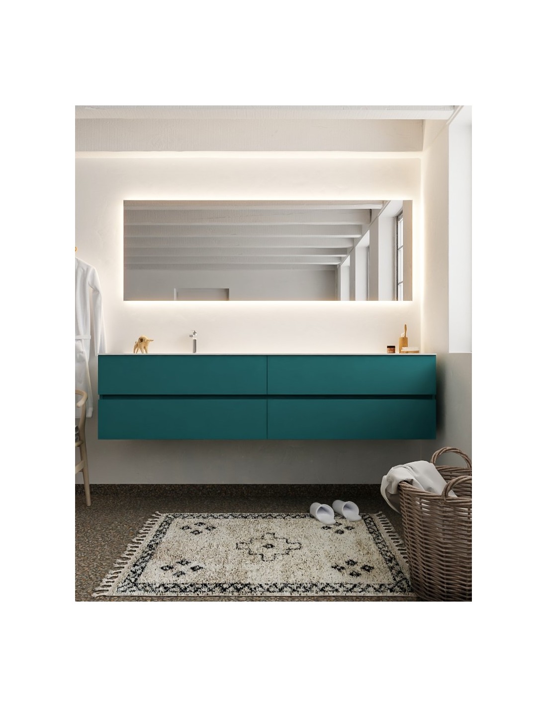 Vica Komplet badmiljø venstrevendt håndvask B200 cm MDF - Petrolium/Talkum