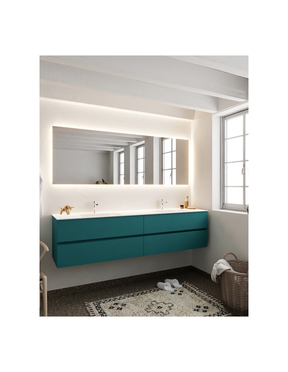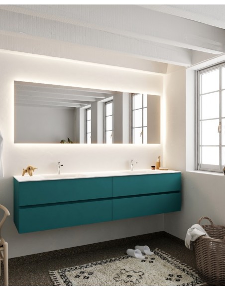 Vica Komplet badmiljø dobbelt håndvask B200 cm MDF - Petrolium/Talkum