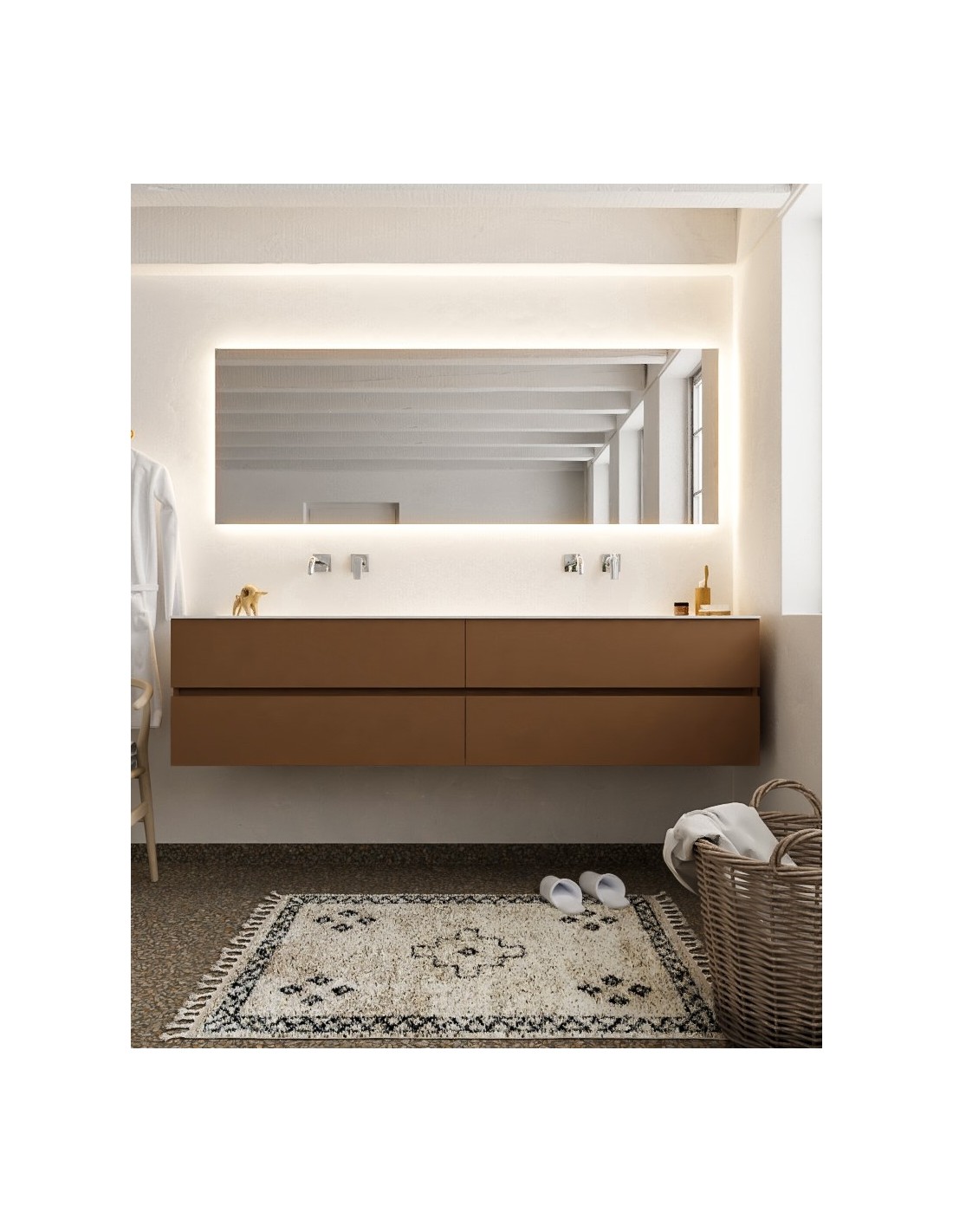 Vica Komplet badmiljø dobbelt håndvask B200 cm MDF - Rust/Talkum