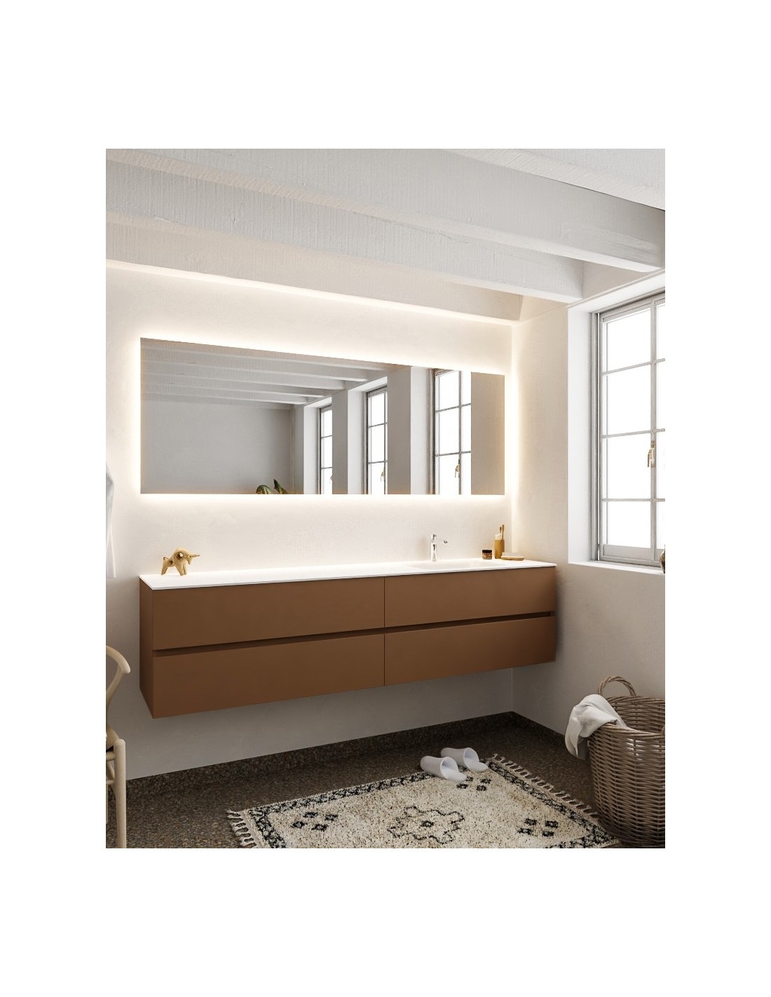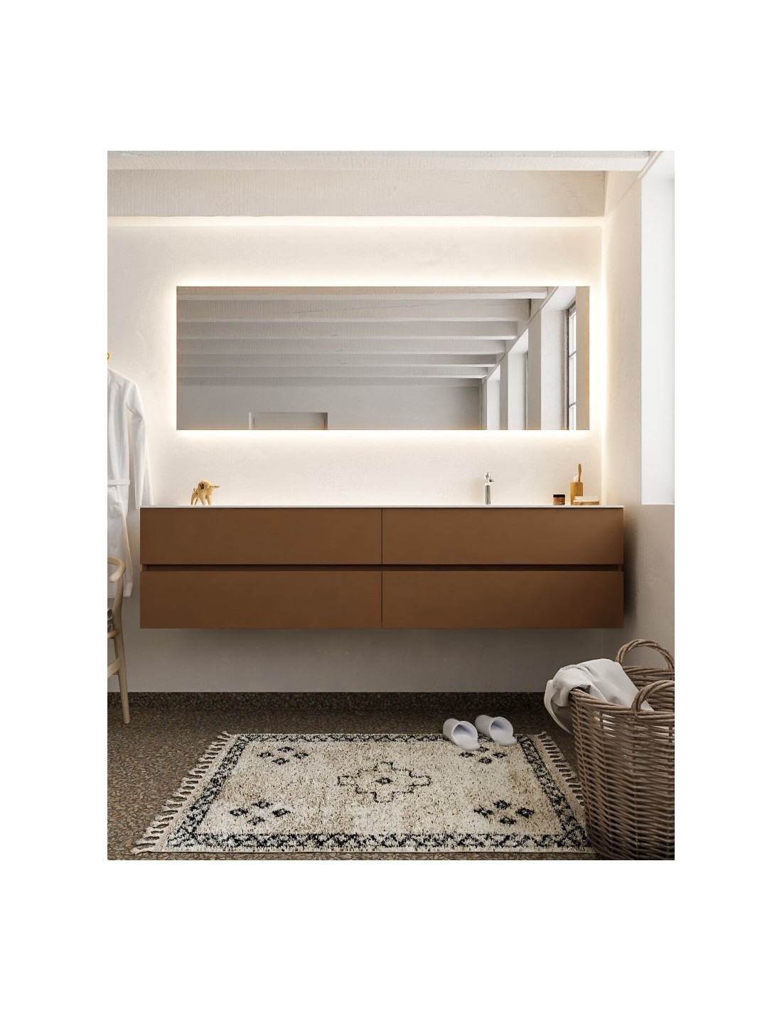 Vica Komplet badmiljø højrevendt håndvask B200 cm MDF - Rust/Talkum