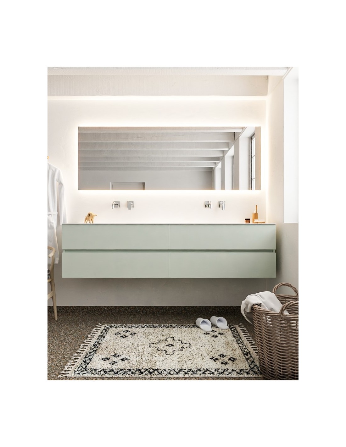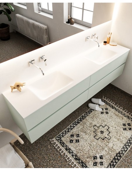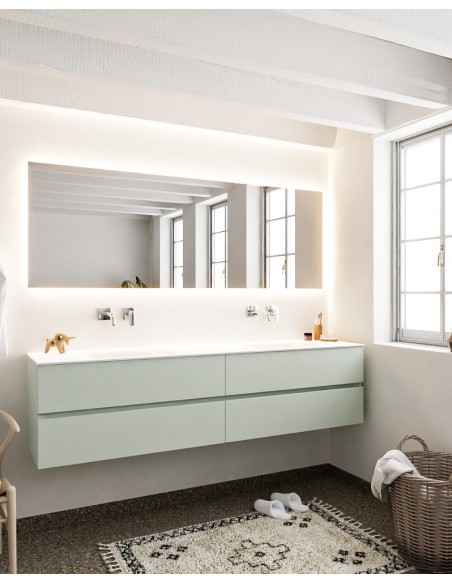 Vica Komplet badmiljø dobbelt håndvask B200 cm MDF - Svag grøn/Talkum