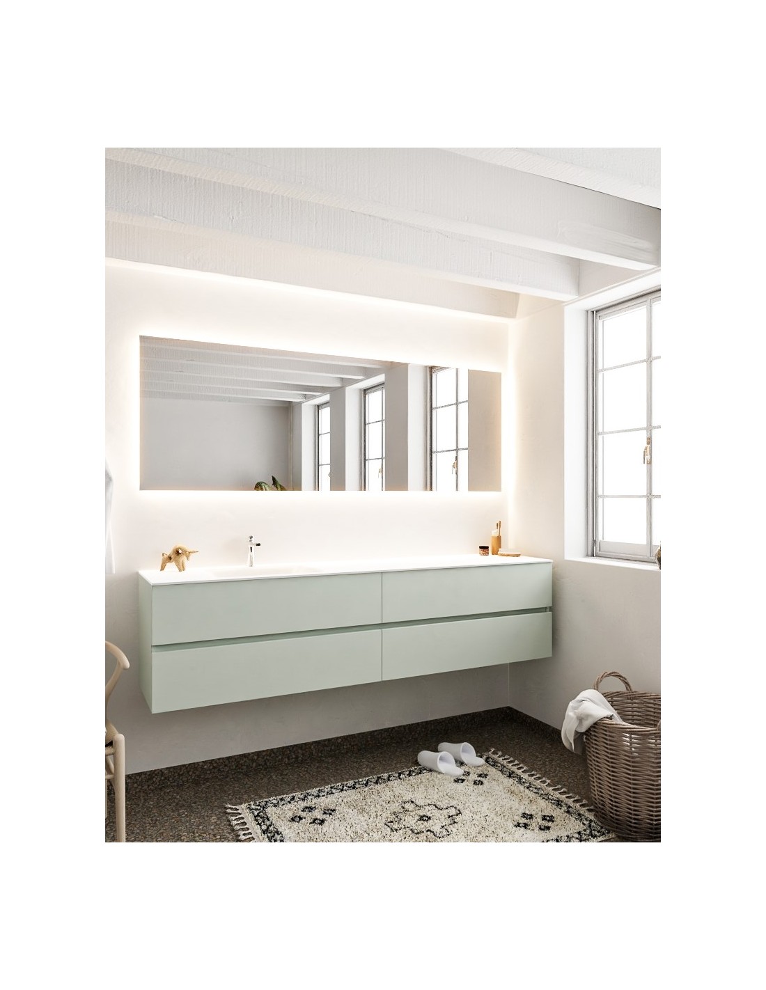 Vica Komplet badmiljø venstrevendt håndvask B200 cm MDF - Svag grøn/Talkum