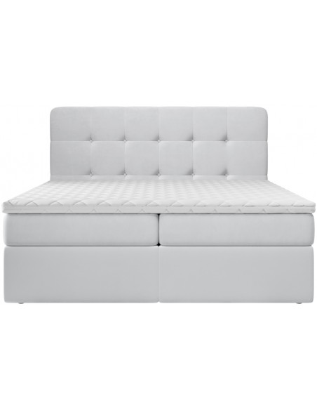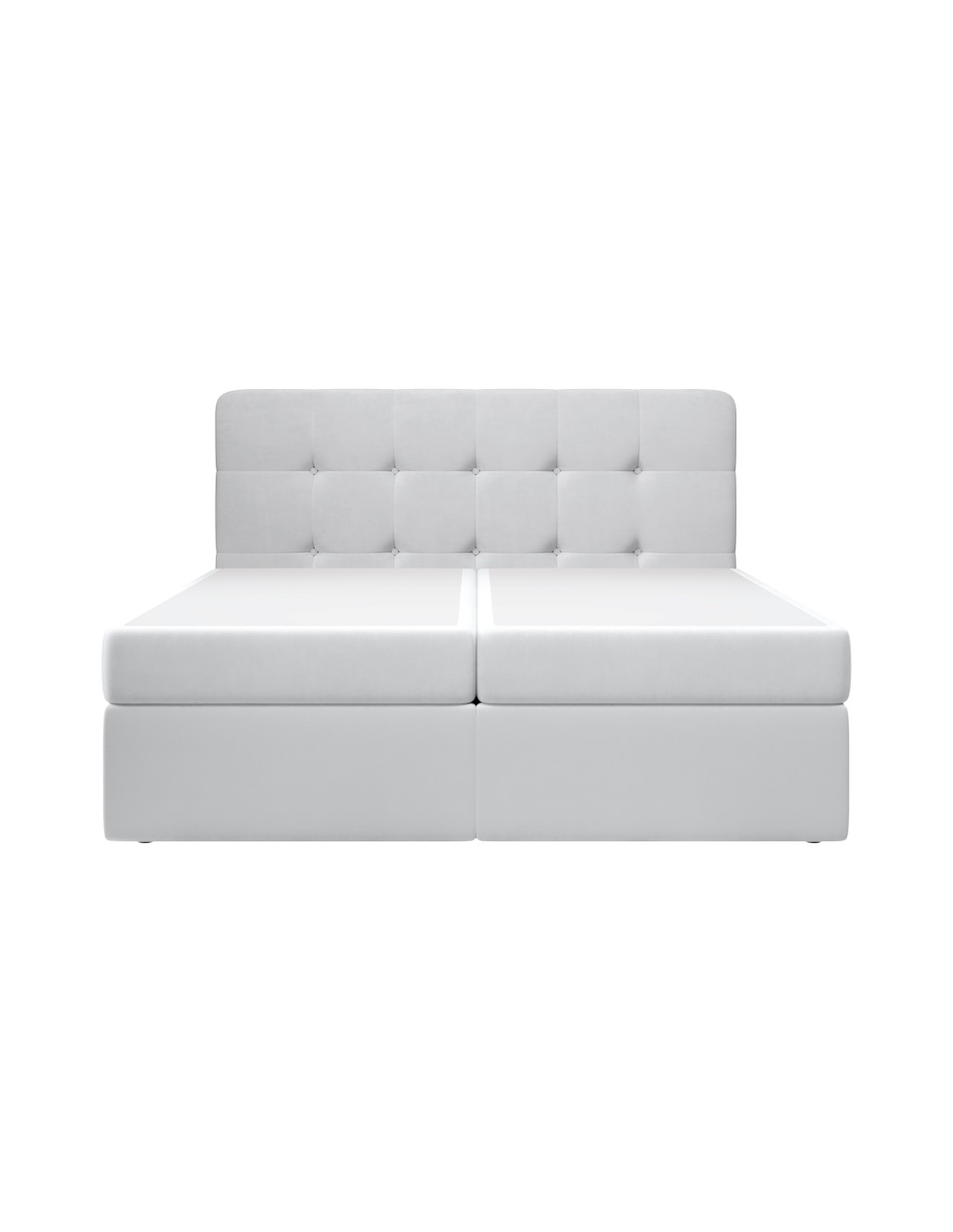 Kontinentalseng med opbevaring og sengegavl, fremstillet i lysegrå velour. Sengen måler 140 x 200 / 211 cm i bredde og dybde og 64 / 118 cm i højden. Madrasserne er med 7 komfortzoner for optimal komfort.
