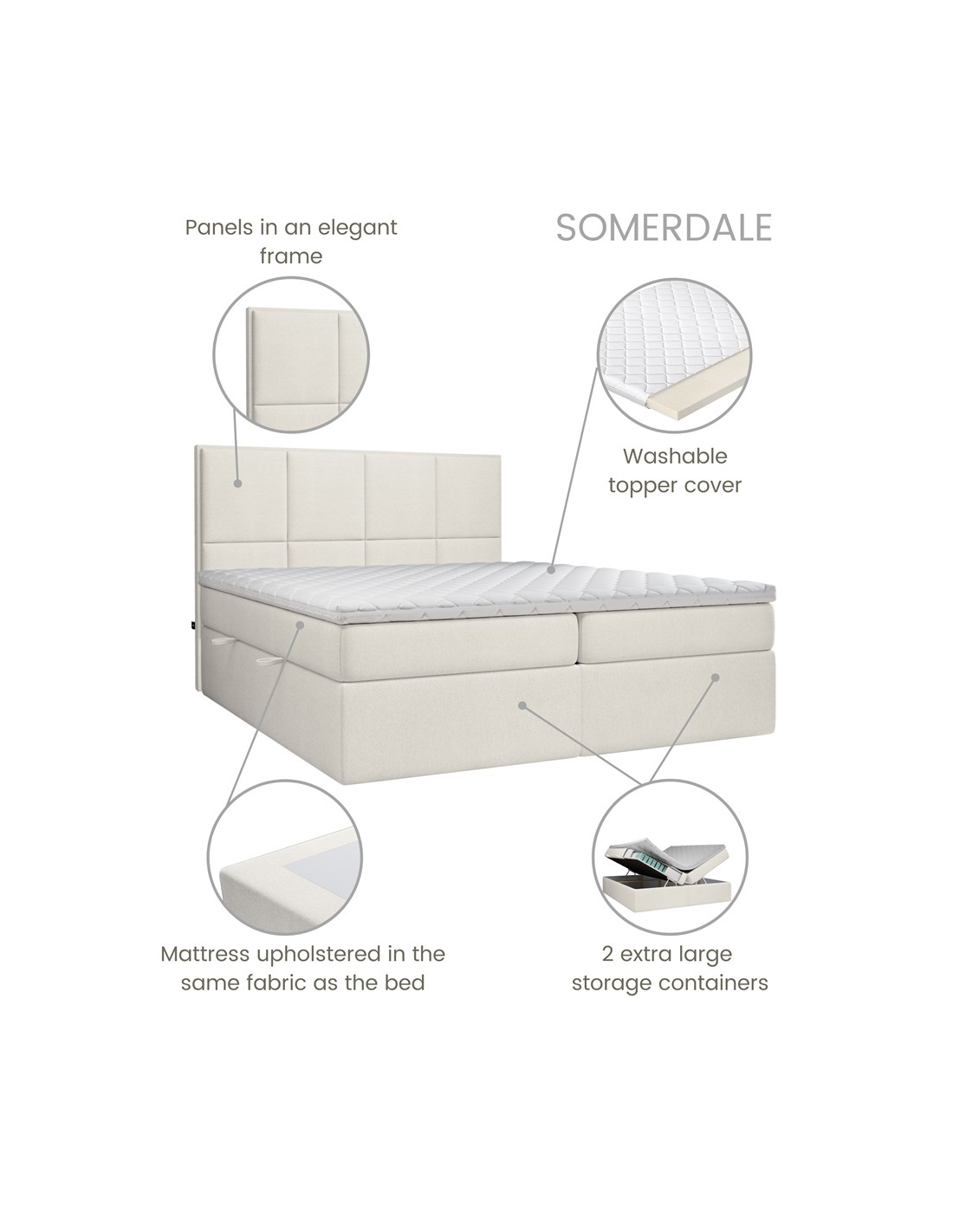 Somerdale kontinentalseng med opbevaring og sengegavl 140 x 200 cm med 7 komfortzoner - Ecru
