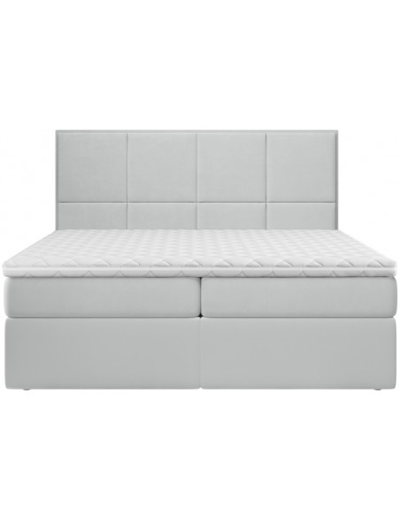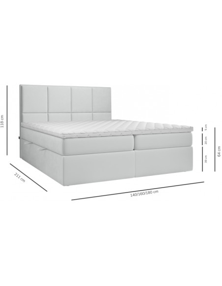Kontinentalseng med opbevaring og sengegavl, fremstillet i lysegrå velour. Sengen måler 140 x 200 / 211 cm i bredde og dybde og 64 / 118 cm i højden. Madrasserne er med 7 komfortzoner for optimal komfort.