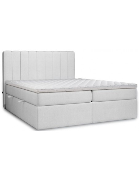 Kontinentalseng med opbevaring og sengegavl, fremstillet i lysegrå polyester. Sengen måler 140 x 200 / 211 cm i bredde og dybde og 64 / 118 cm i højden. Madrasserne er med 7 komfortzoner for optimal komfort.