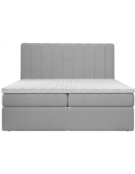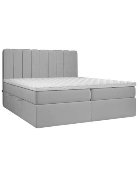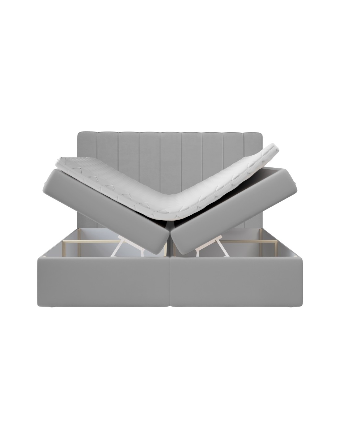 Kontinentalseng med opbevaring og sengegavl, fremstillet i lysegrå velour. Sengen måler 140 x 200 / 211 cm i bredde og dybde og 64 / 118 cm i højden. Madrasserne er med 7 komfortzoner for optimal komfort.