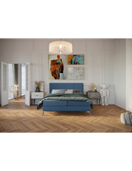 Cube kontinentalseng med opbevaring og sengegavl 140 x 200 cm med 7 komfortzoner - Krom/Blå